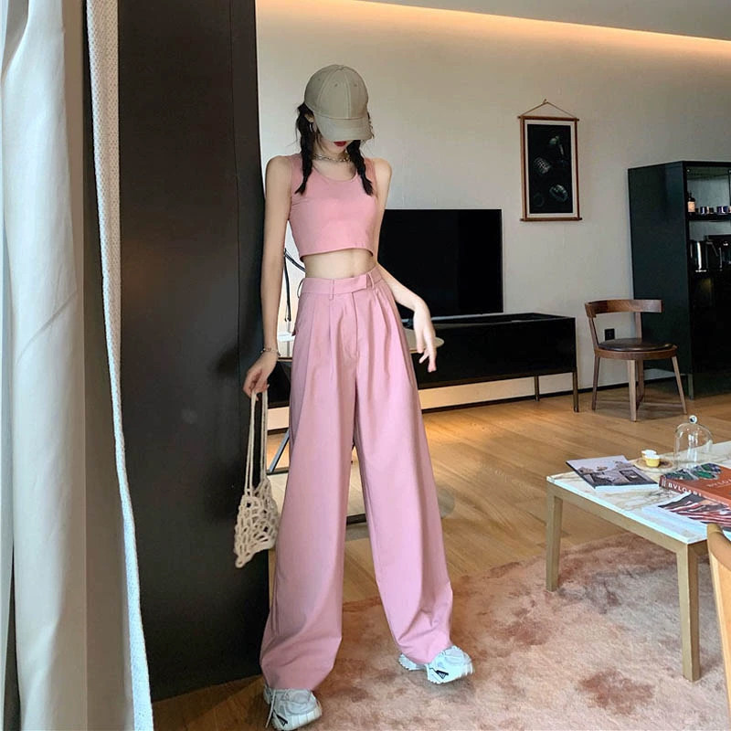 Розовые штаны, сексуальные короткие повседневные брюки, высокая талия, свободный прямой крой, в обтяжку