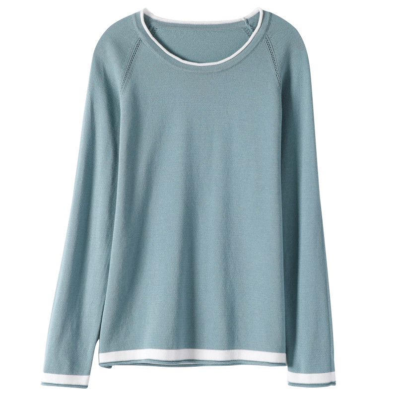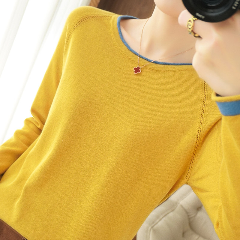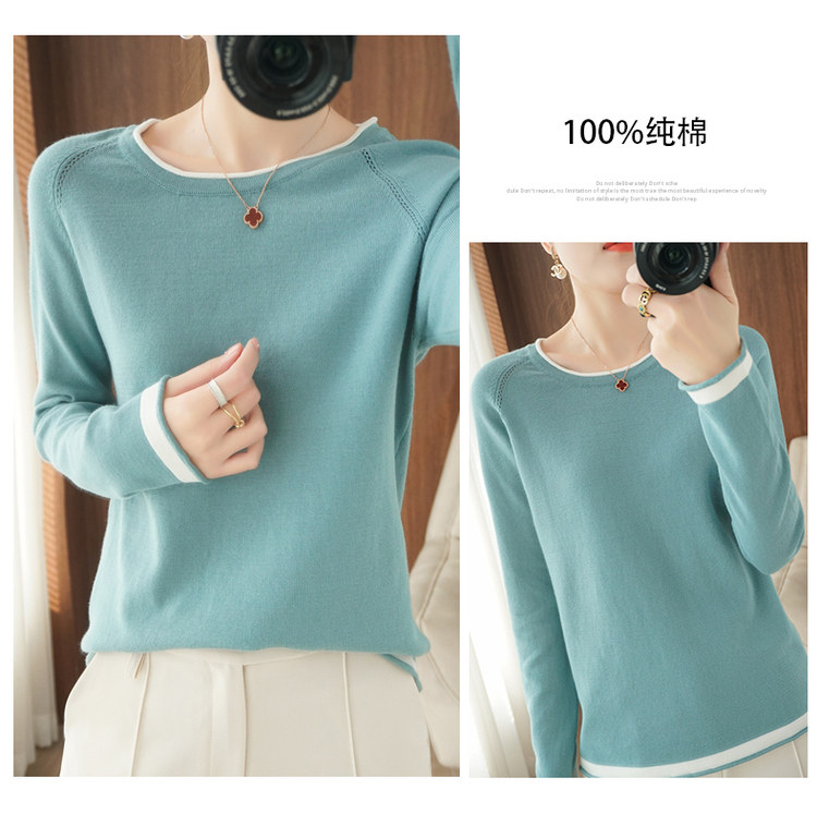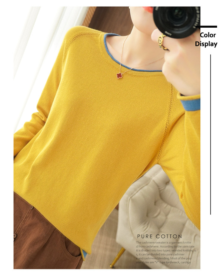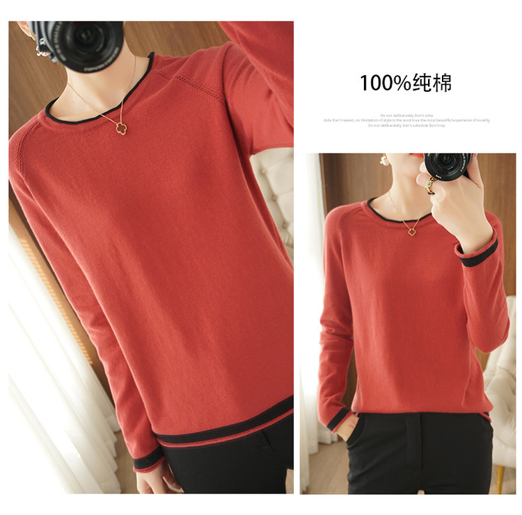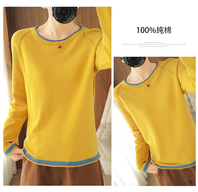Хлопковый трикотажный весенний свитер с круглым воротником, оверсайз, коллекция 2021