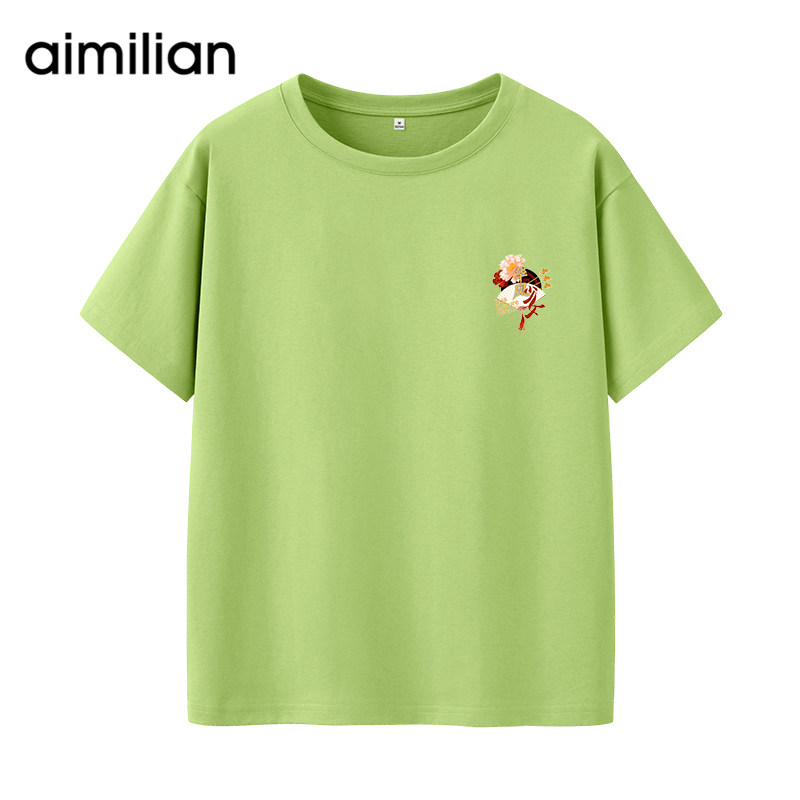 艾米恋 Tide, хлопковая летняя футболка с коротким рукавом, свободный крой, сезон 2021