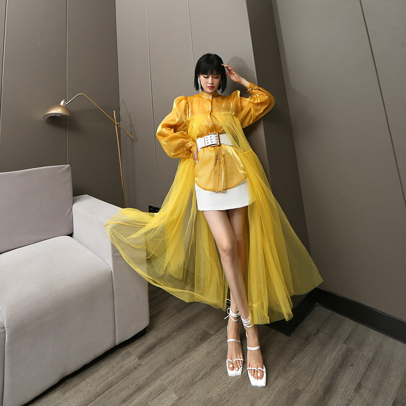 Длинная тонкая рубашка, юбка из сетки, длина макси, защита от солнца
