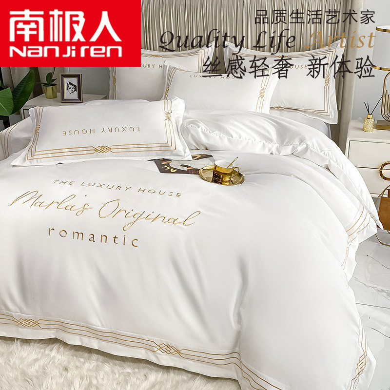 南极人 Брендовый шелковый комплект, кровать, простыня, пододеяльник, легкий роскошный стиль, 4 предмета, европейский стиль, скандинавский стиль