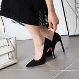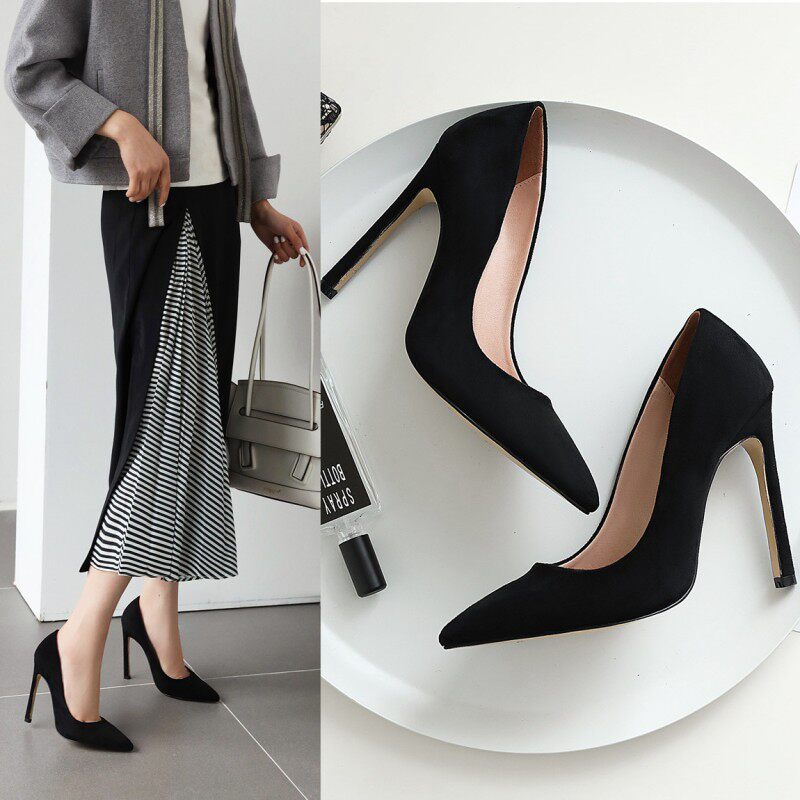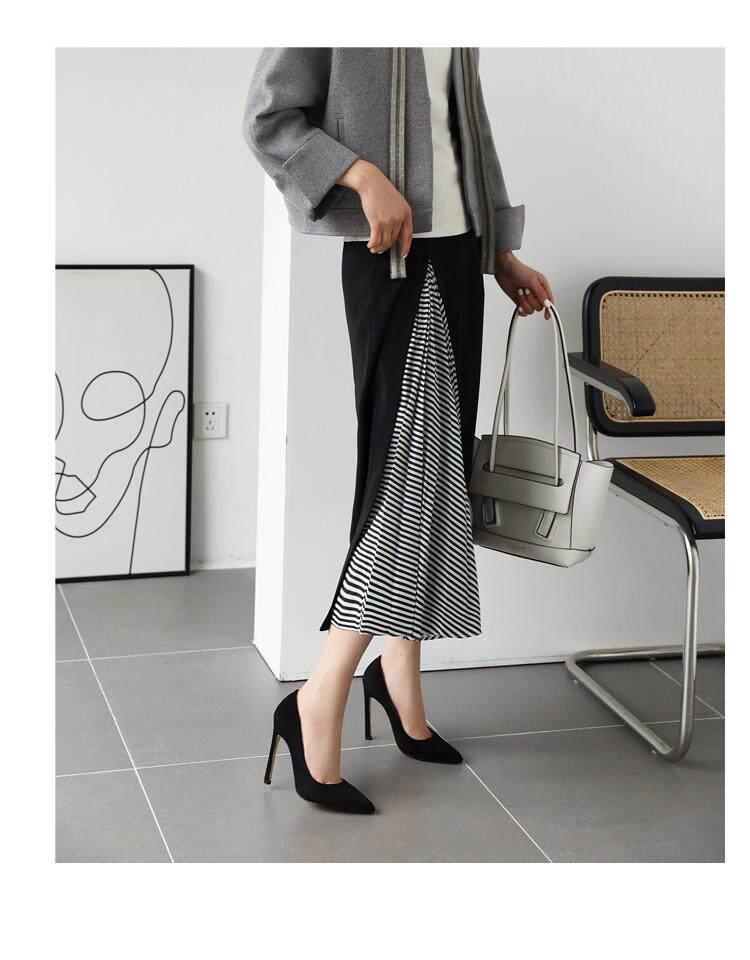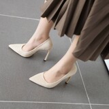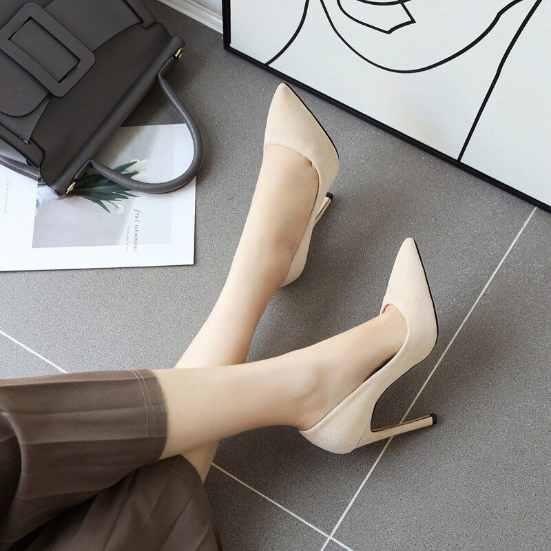 Бежевые черные универсальные туфли на высоком каблуке с низким вырезом, коллекция 2021, тренд сезона