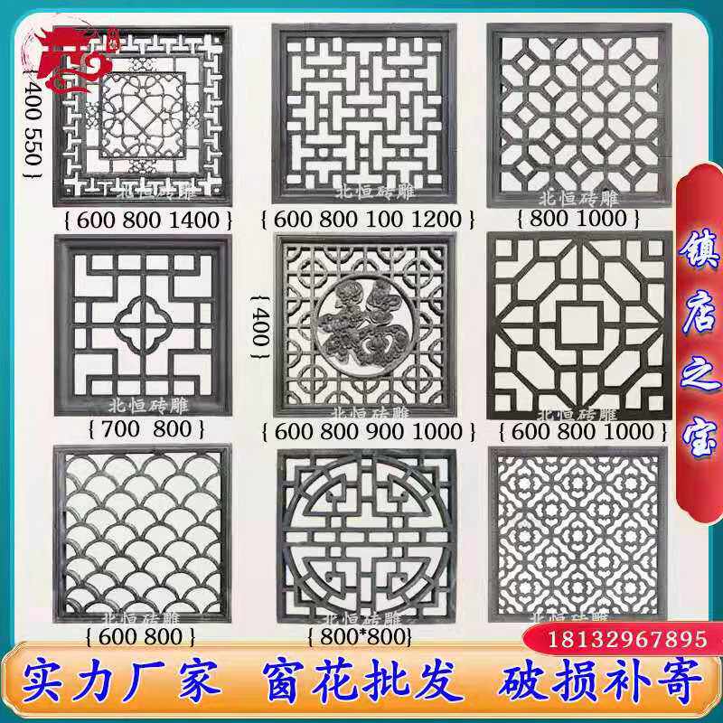 Полые оконные решетки, резьба по кирпичу в китайском стиле, стены виллы, прозрачные окна, квадратные иероглифы Фу, решетки из синтетического керамзитоцемента, подвески в стиле Хуэй.