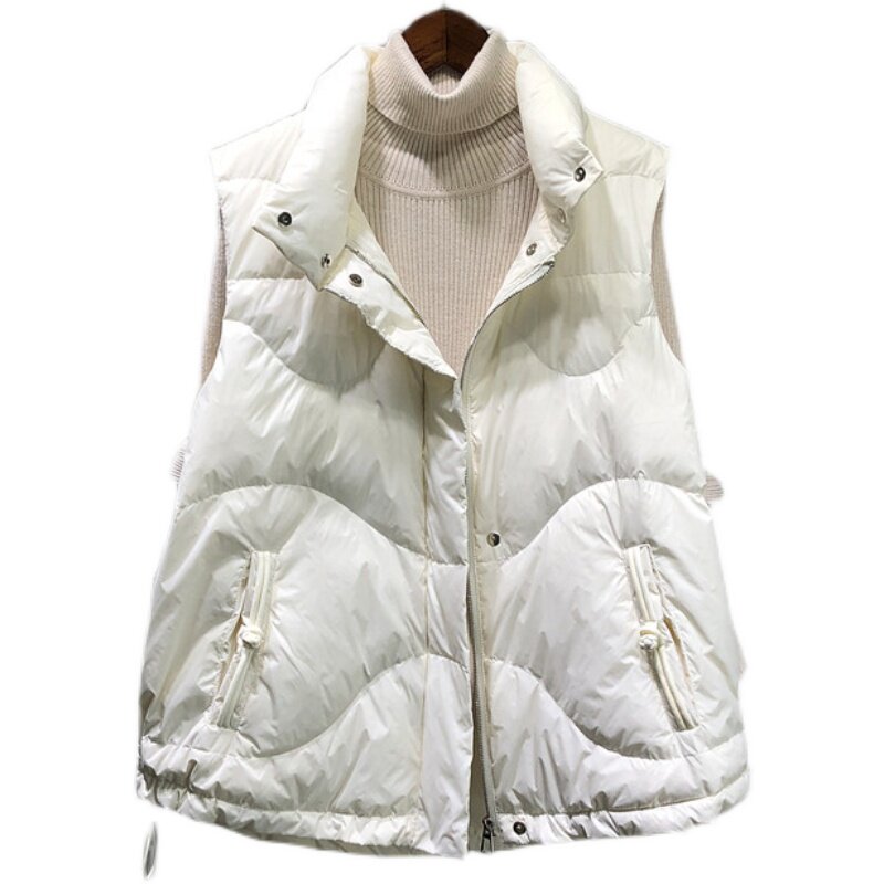 Демисезонный пуховик, жилет, майка топ, бархатная куртка, оверсайз, в западном стиле, утиный пух