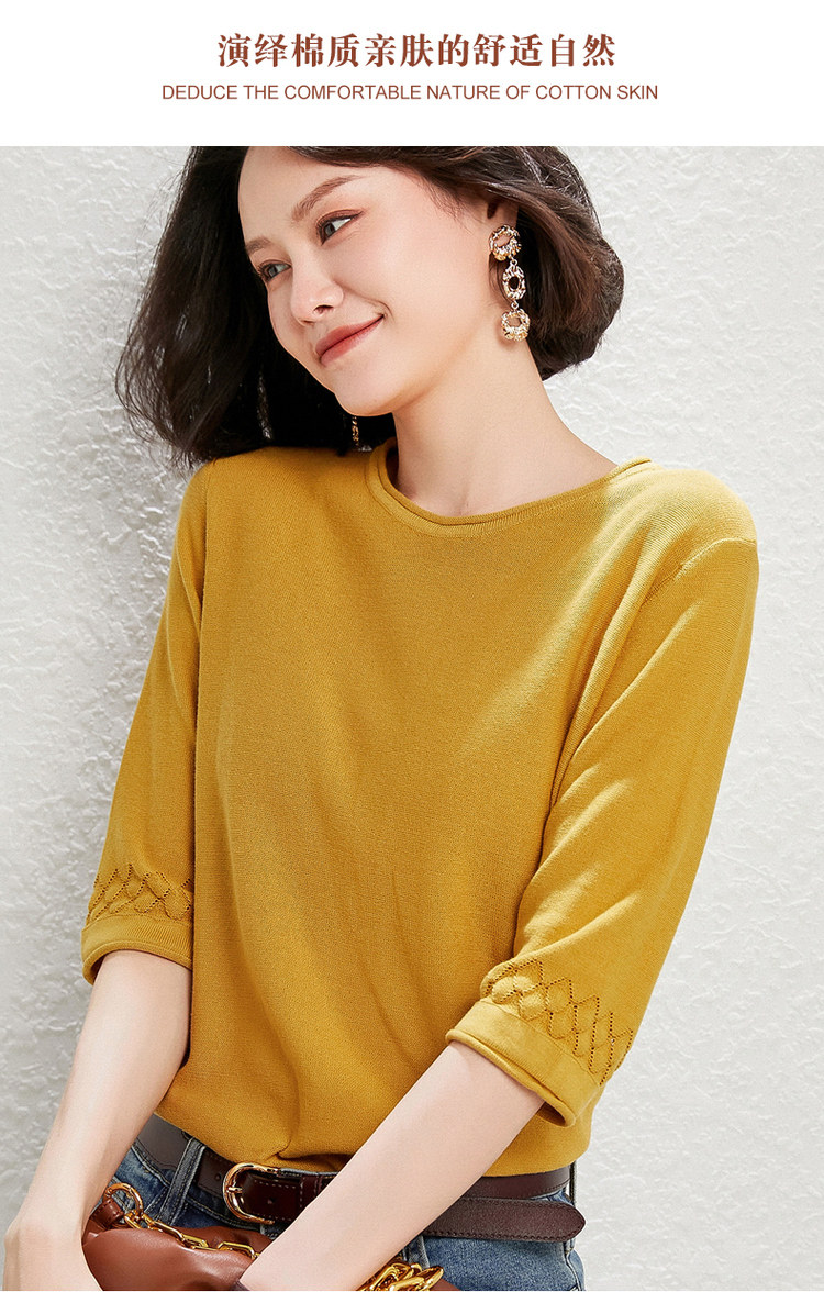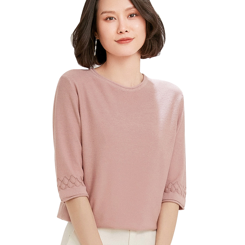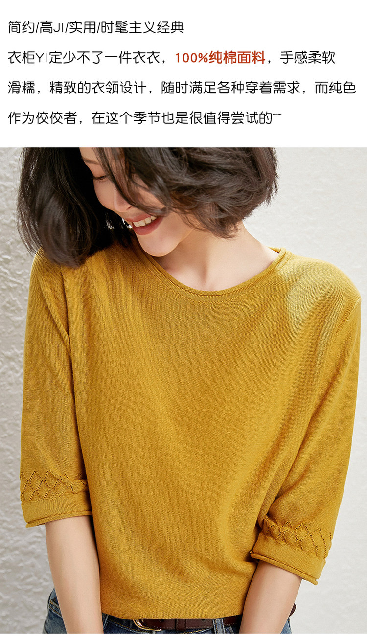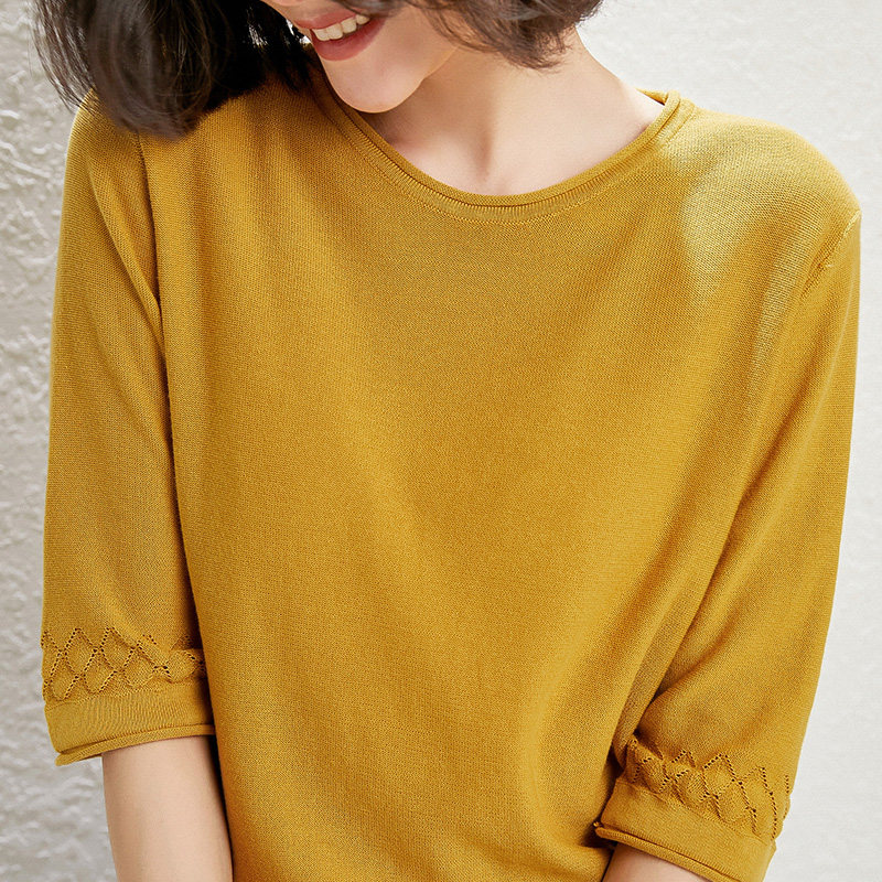 Хлопковый трикотажный базовый свитер с круглым воротником, тонкая футболка, оверсайз, короткий рукав
