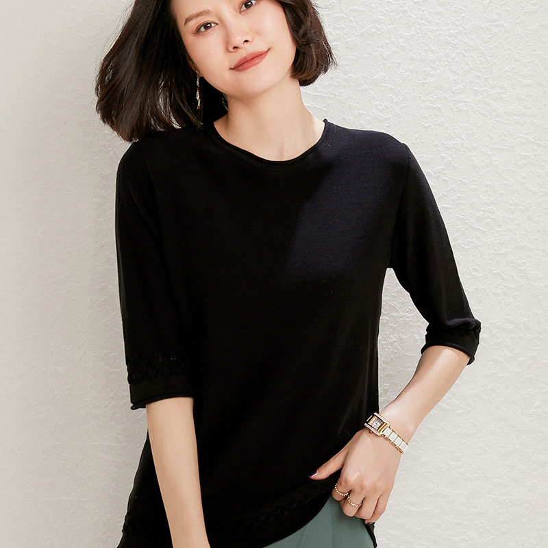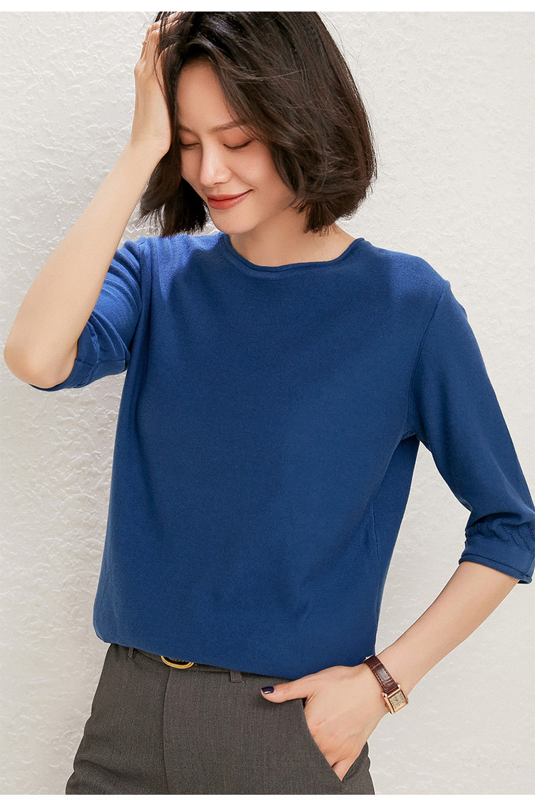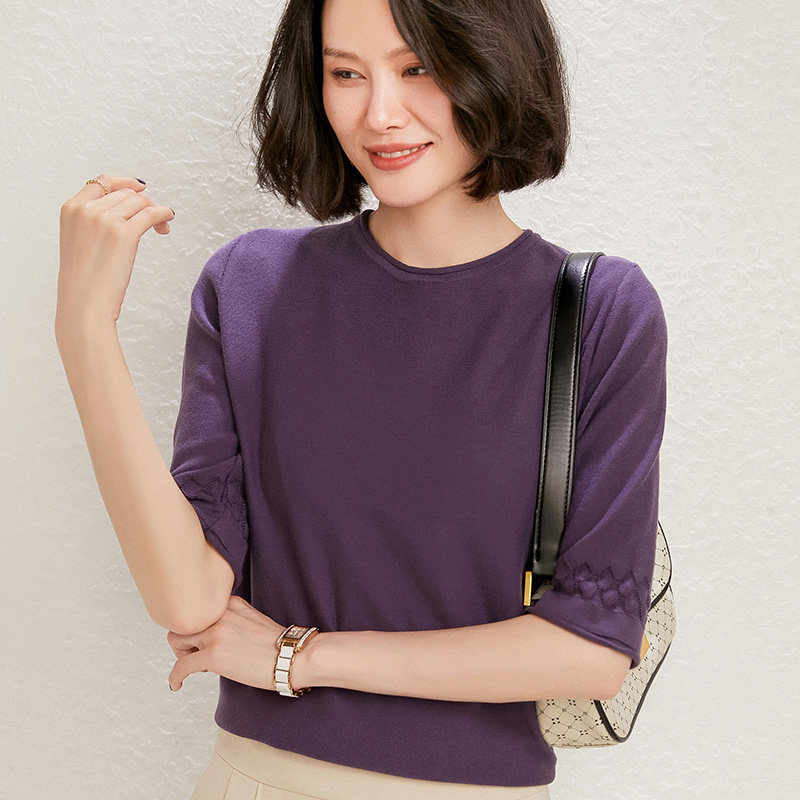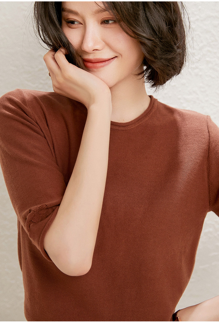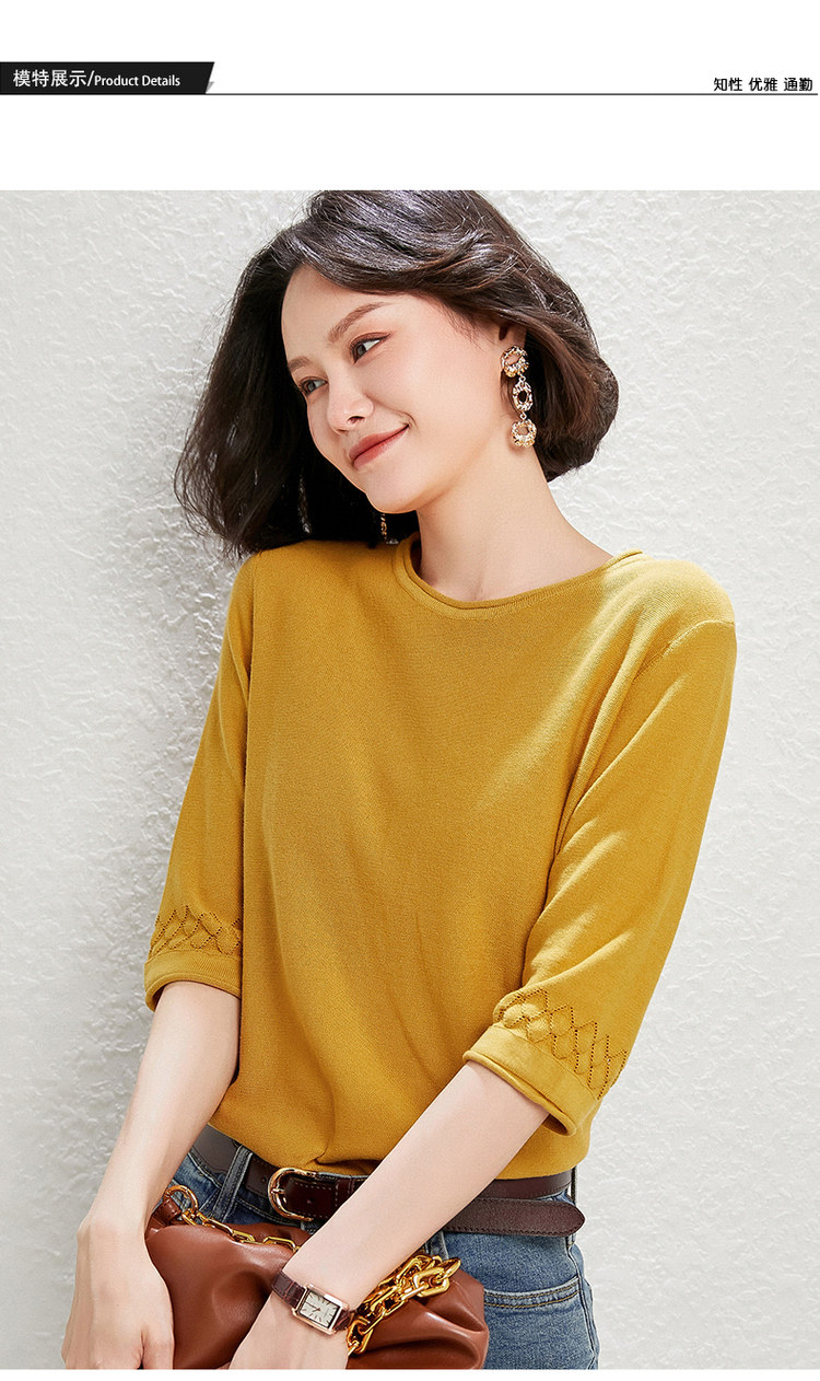 Хлопковый трикотажный базовый свитер с круглым воротником, тонкая футболка, оверсайз, короткий рукав