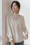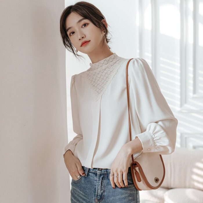 Дизайнерская кружевная рубашка с круглым воротником, весенний комплект, лонгслив, тренд сезона, коллекция 2021, оверсайз