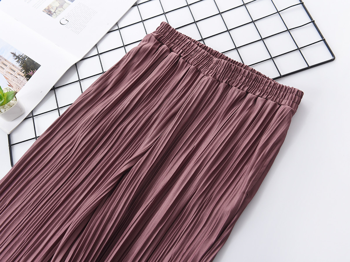 Женские брюки с широкими ногами, прямые плиссированные брюки, 100% полиэстер, ткань имеет теплое ощущение, очень удобное