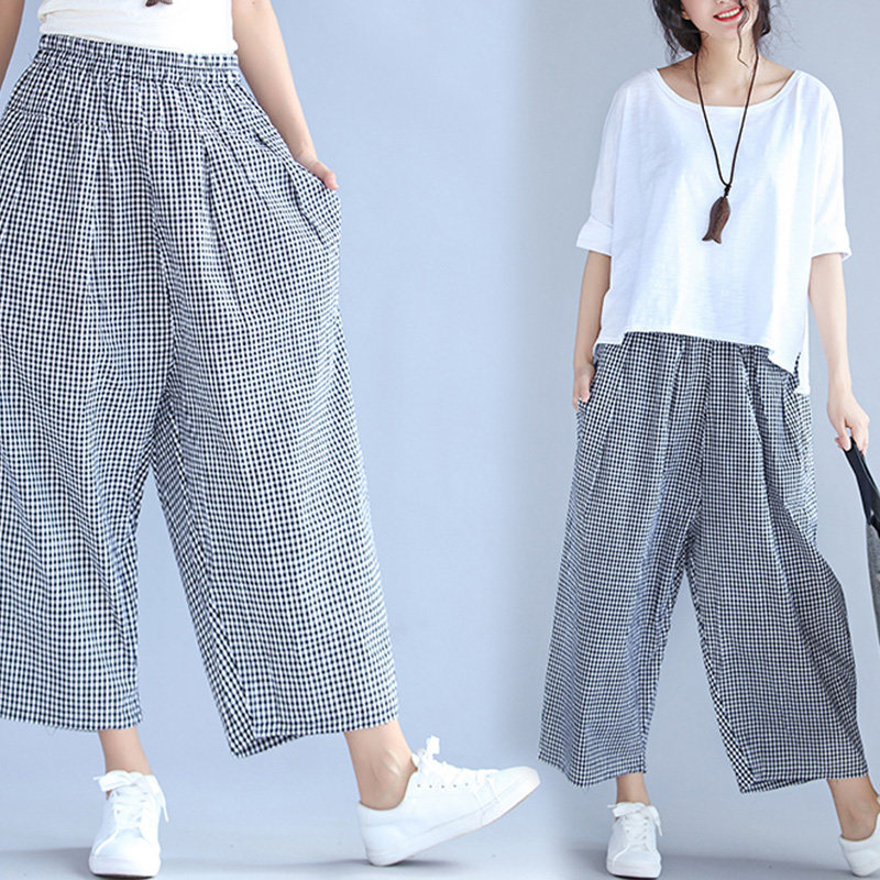 Летние ретро штаны для отдыха, сезон 2021, большой размер, свободный крой, из хлопка и льна, эластичная талия