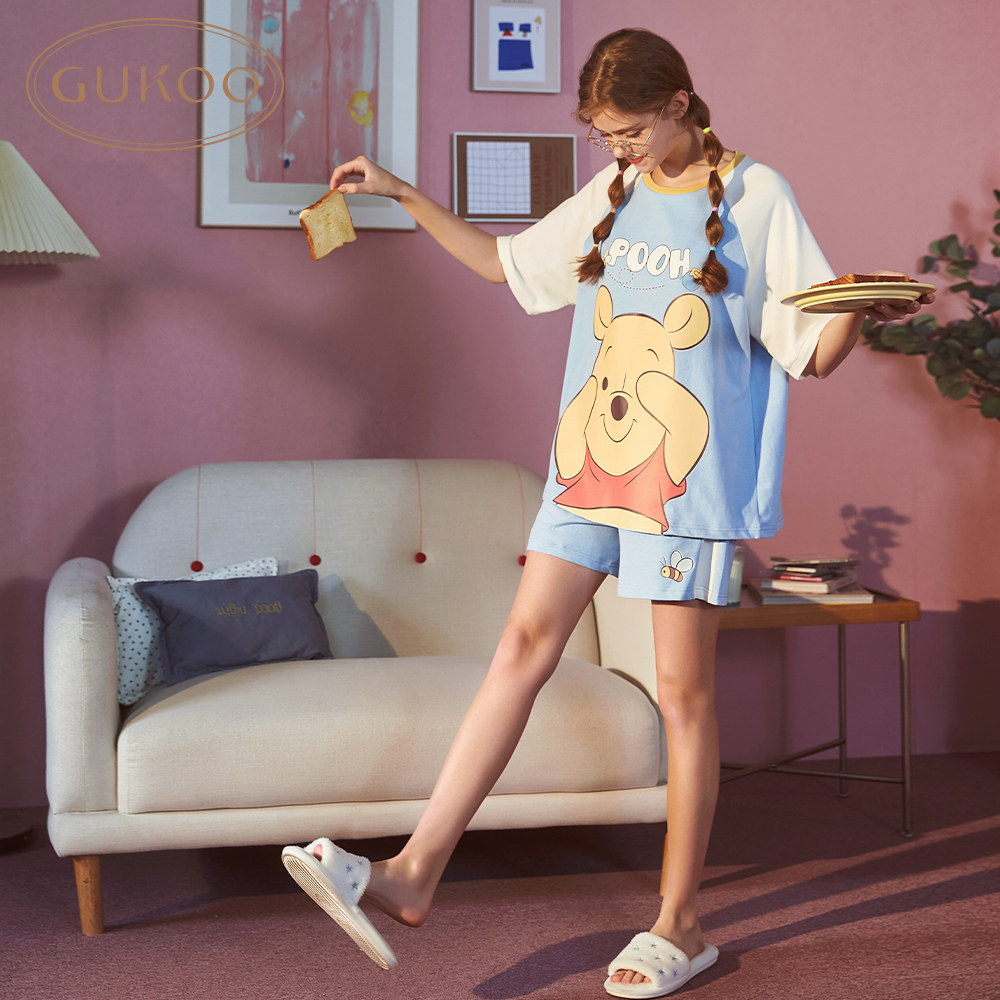 Gukoo/果壳 Весенняя летняя пижама, мультяшный комплект для отдыха, с медвежатами