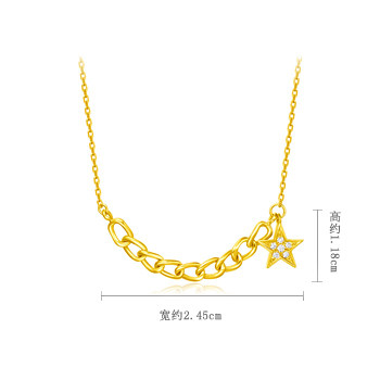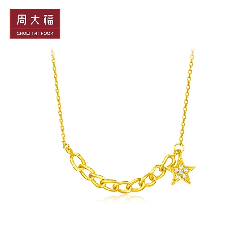 周大福 Минималистичная цепь, бриллиантовая подвеска, золото 750 пробы