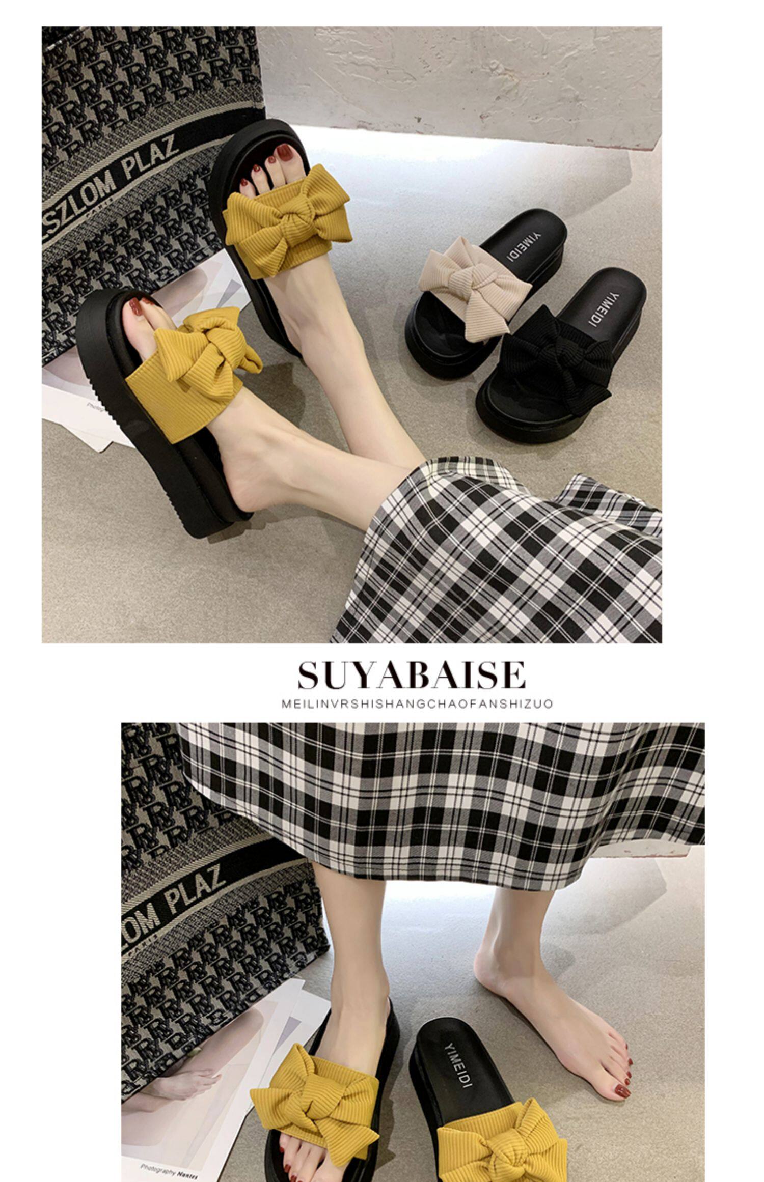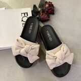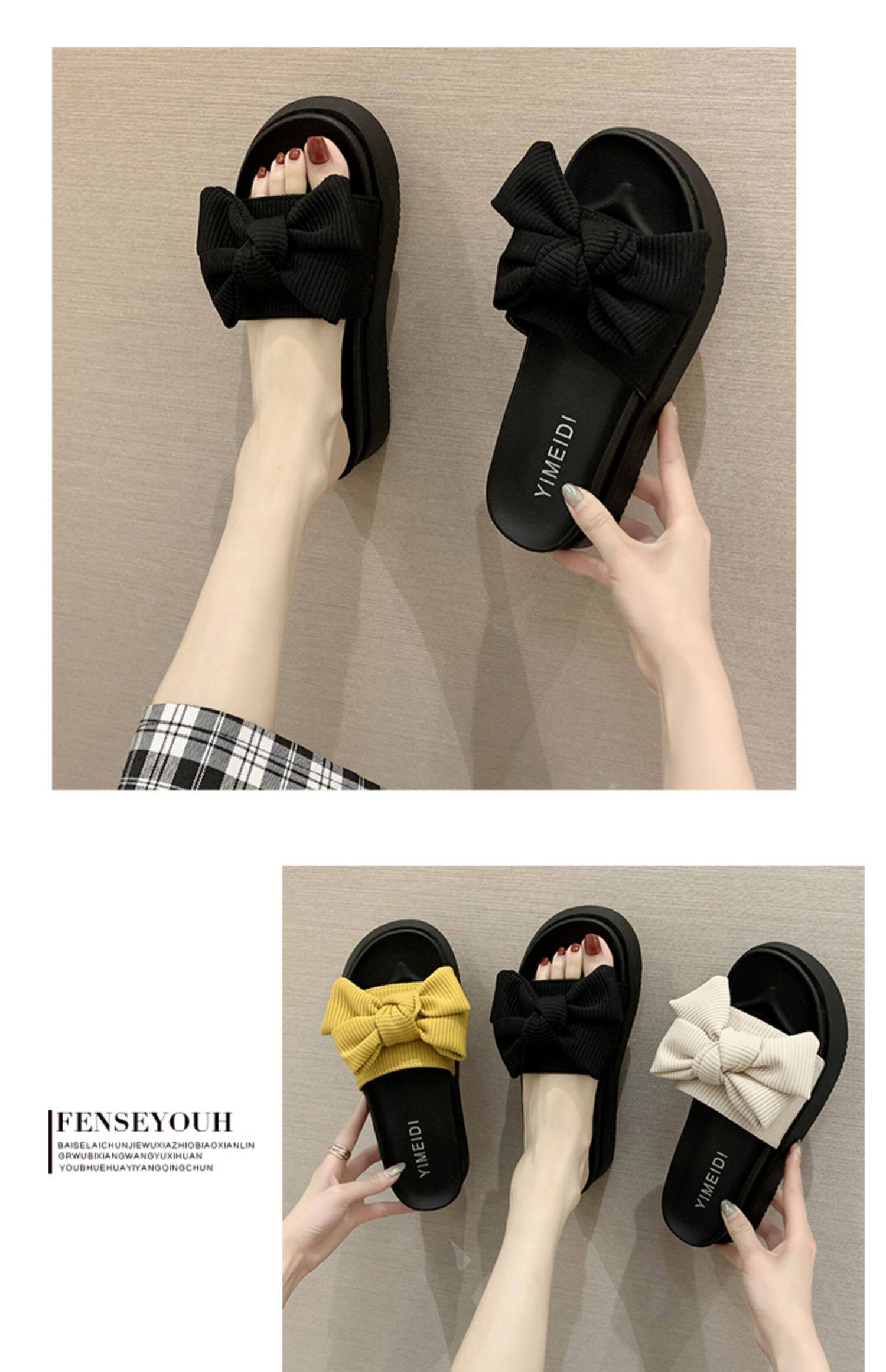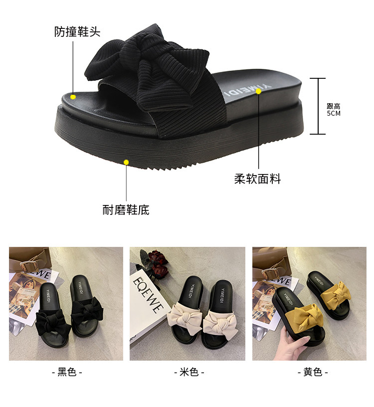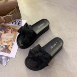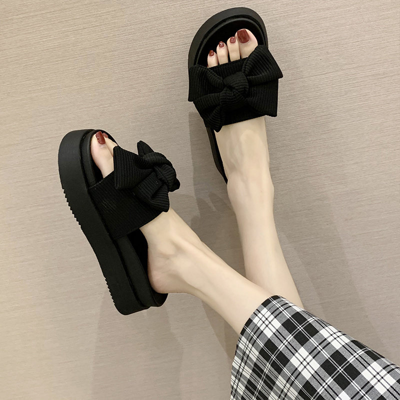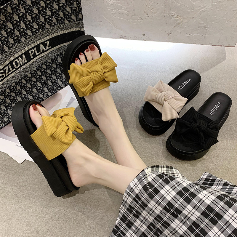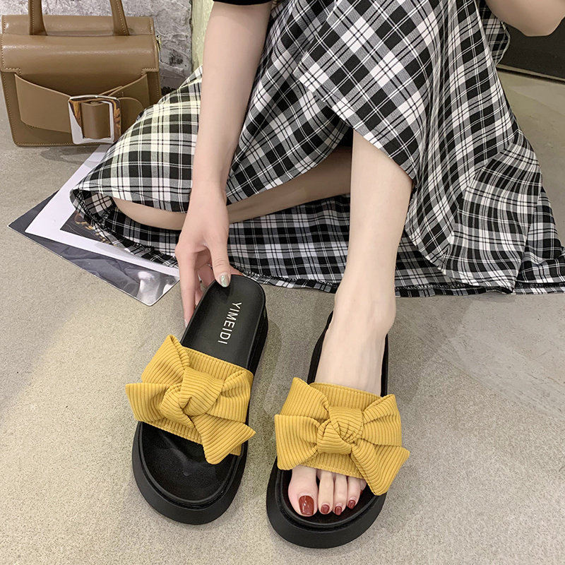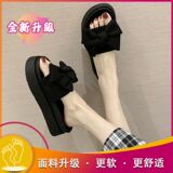 Слайдеры с бантиком на платформе, тапочки, модная универсальная нескользящая пляжная обувь, коллекция 2023