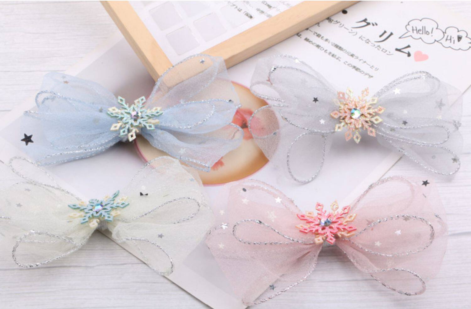 Аксессуар для волос с бантиком, летняя детская розовая заколка для волос, милые шпильки для волос, ободок, со снежинками, DIY