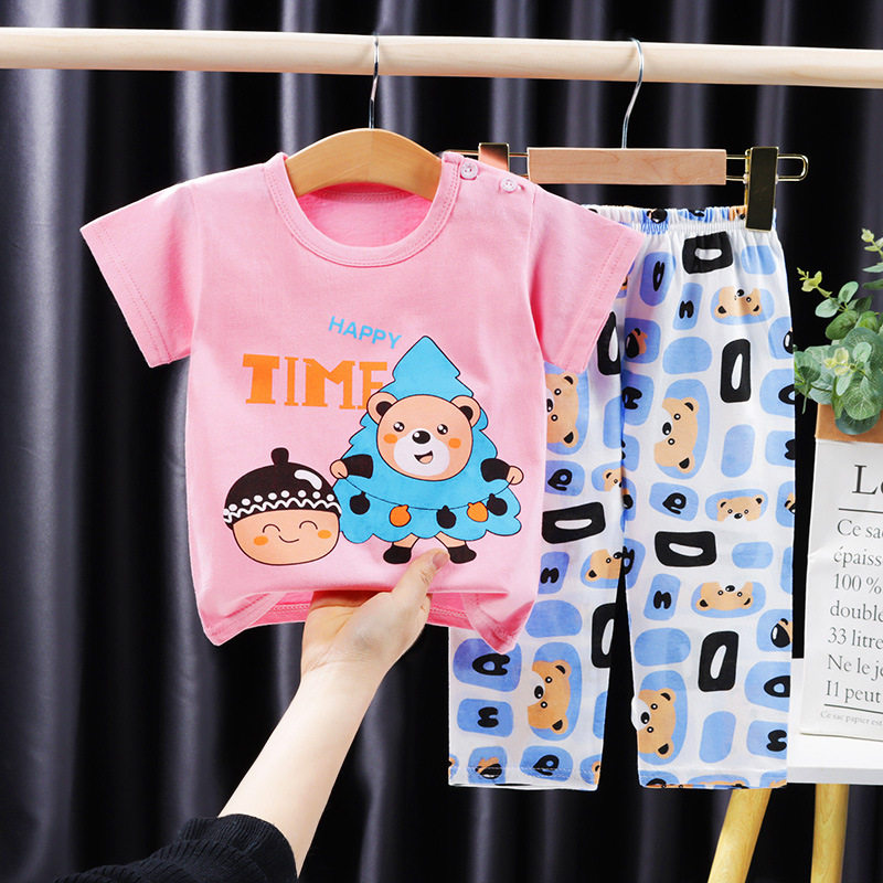Летние хлопковые штаны подходит для мужчин и женщин, футболка с коротким рукавом, детская пижама