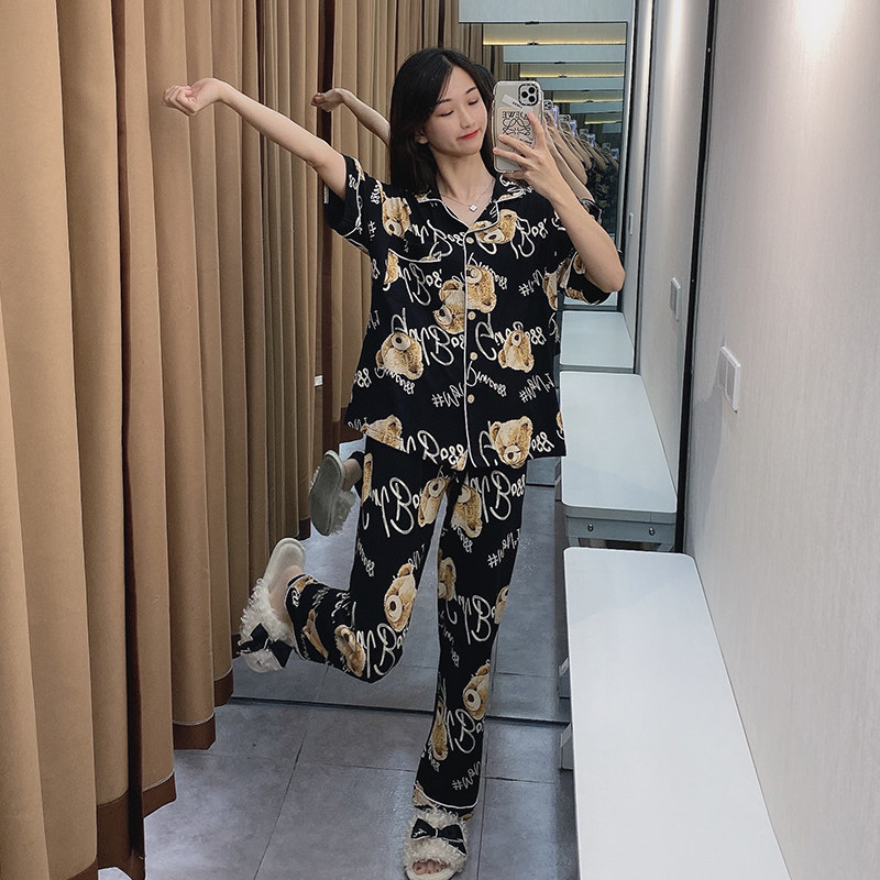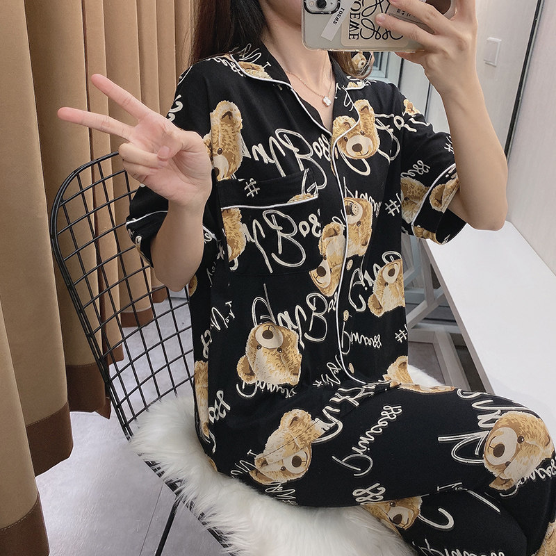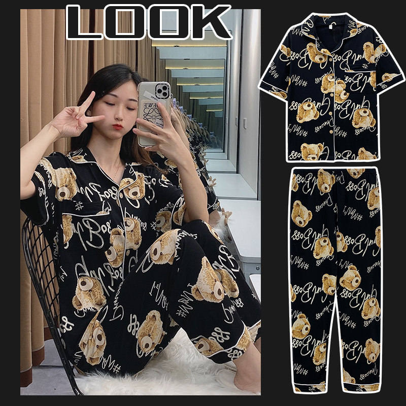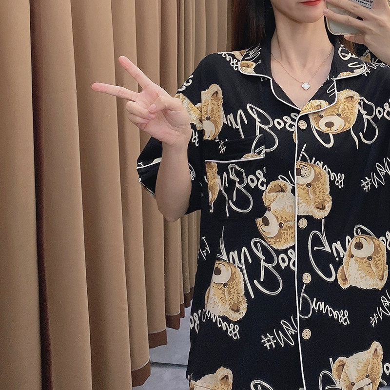 Летние хлопковые тонкие штаны, брендовая пижама, комплект, с медвежатами, короткий рукав, коллекция 2021