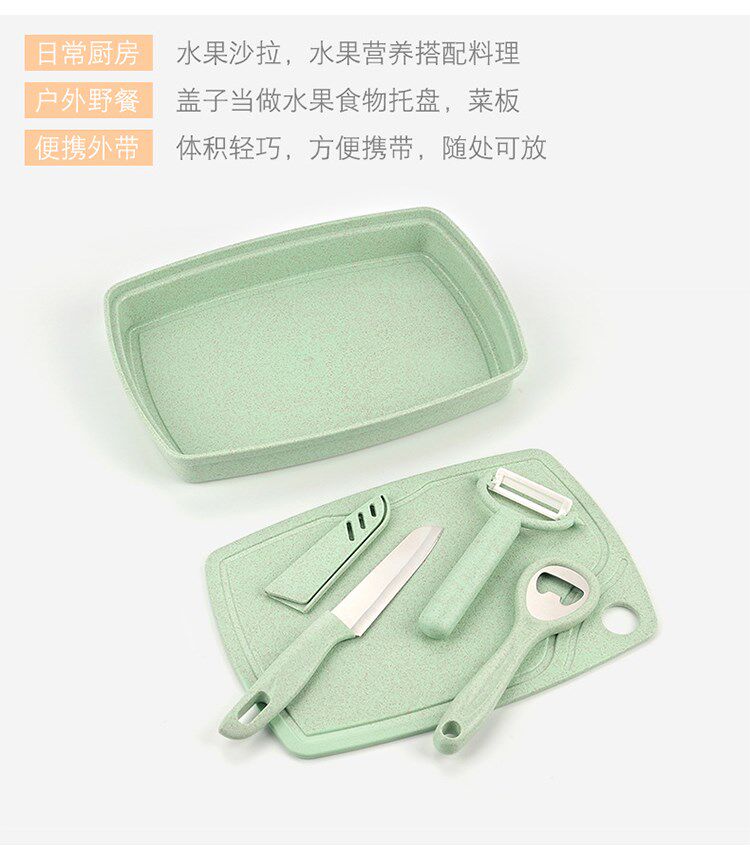 Анти -мультинговая пшеничная соломенная фруктовая доска для подножки фруктовый нож Керамический бутылок Открытие пятиболочных изделий, чтобы принести домой маленький