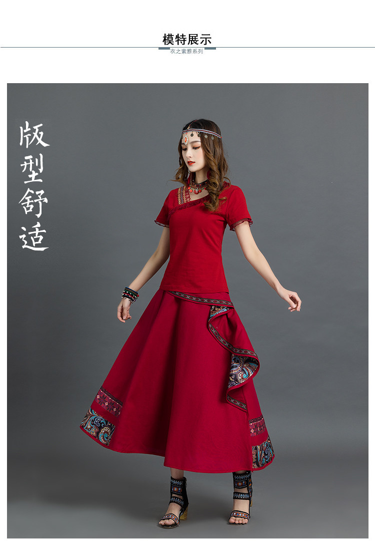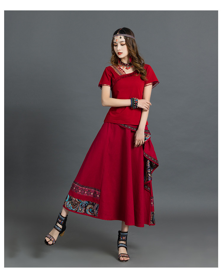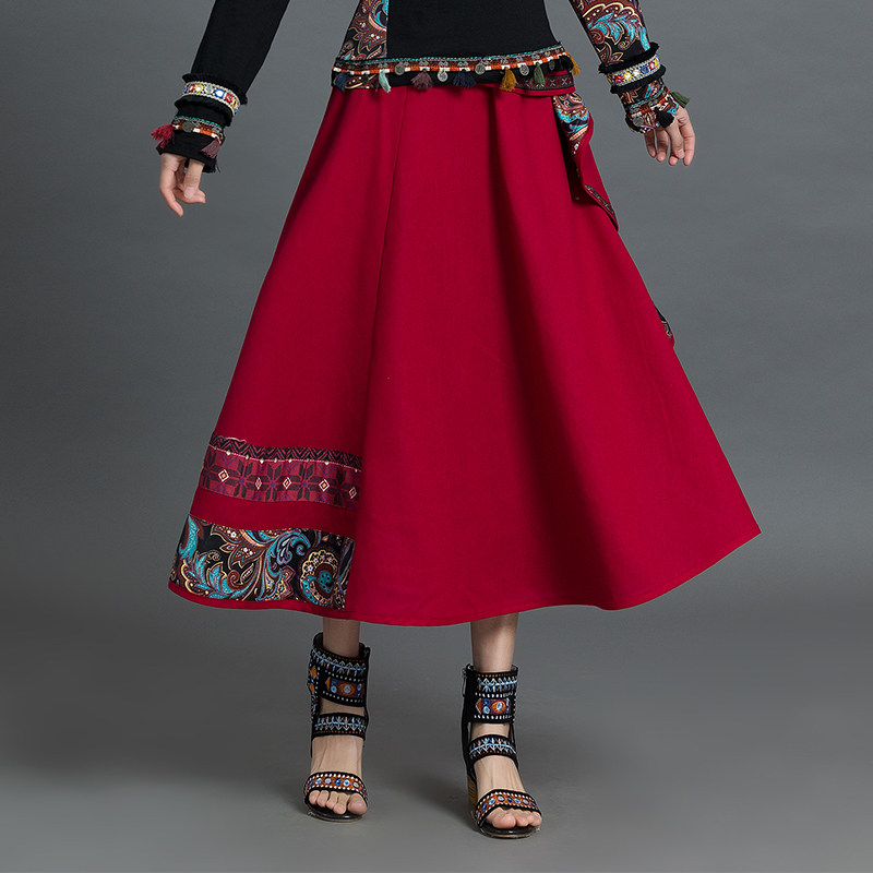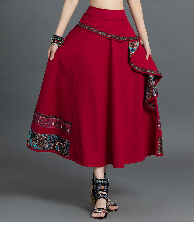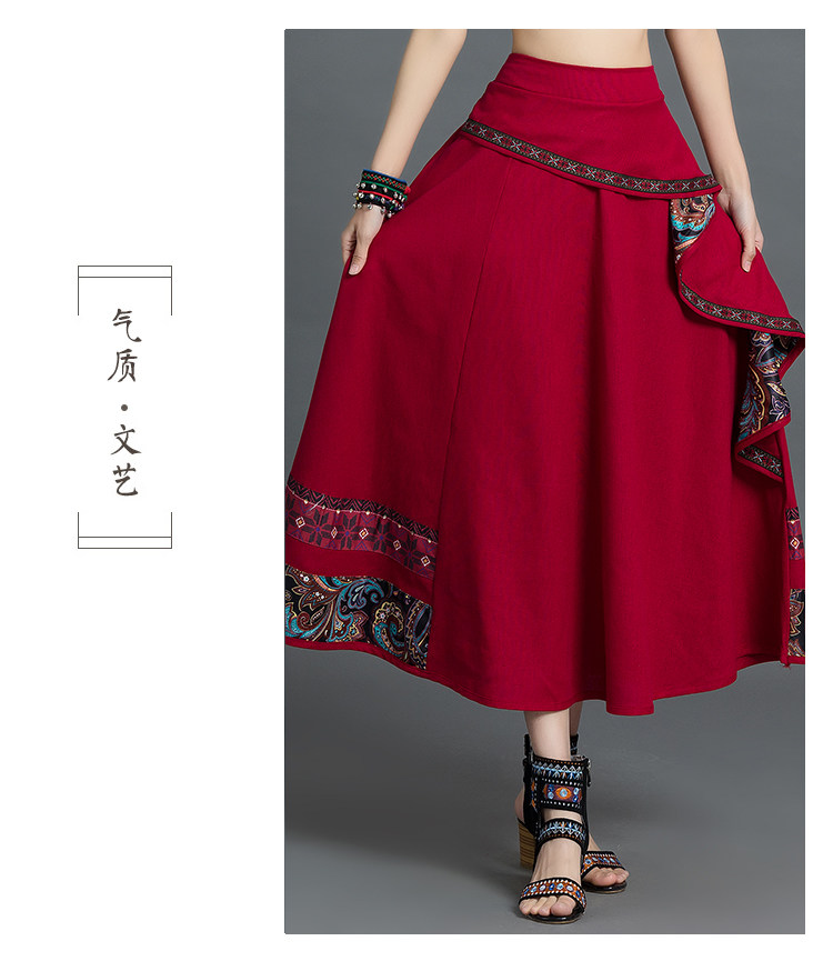 Летняя ретро этническая юбка, коллекция 2021, этнический стиль, из хлопка и льна