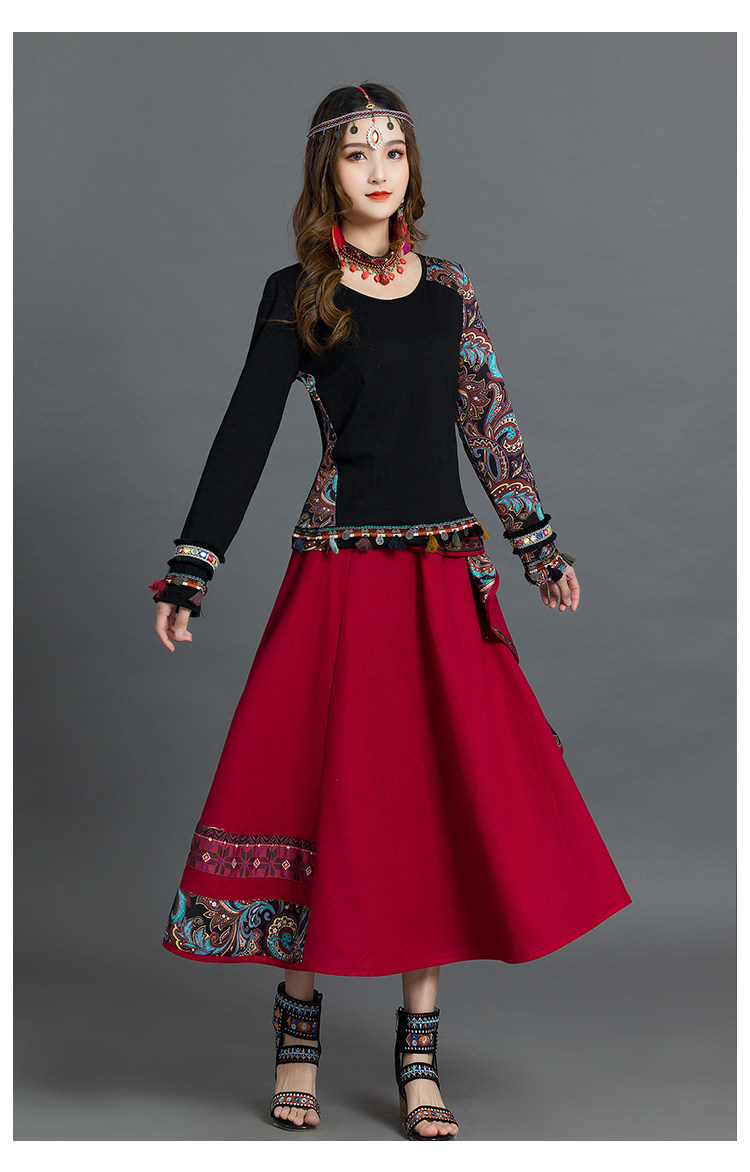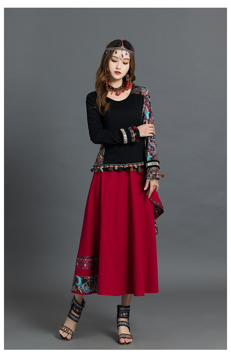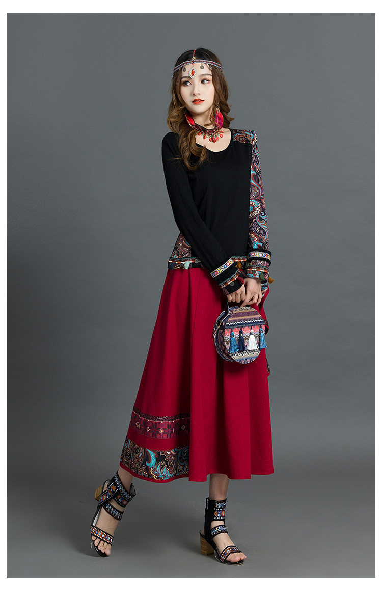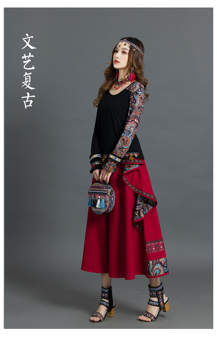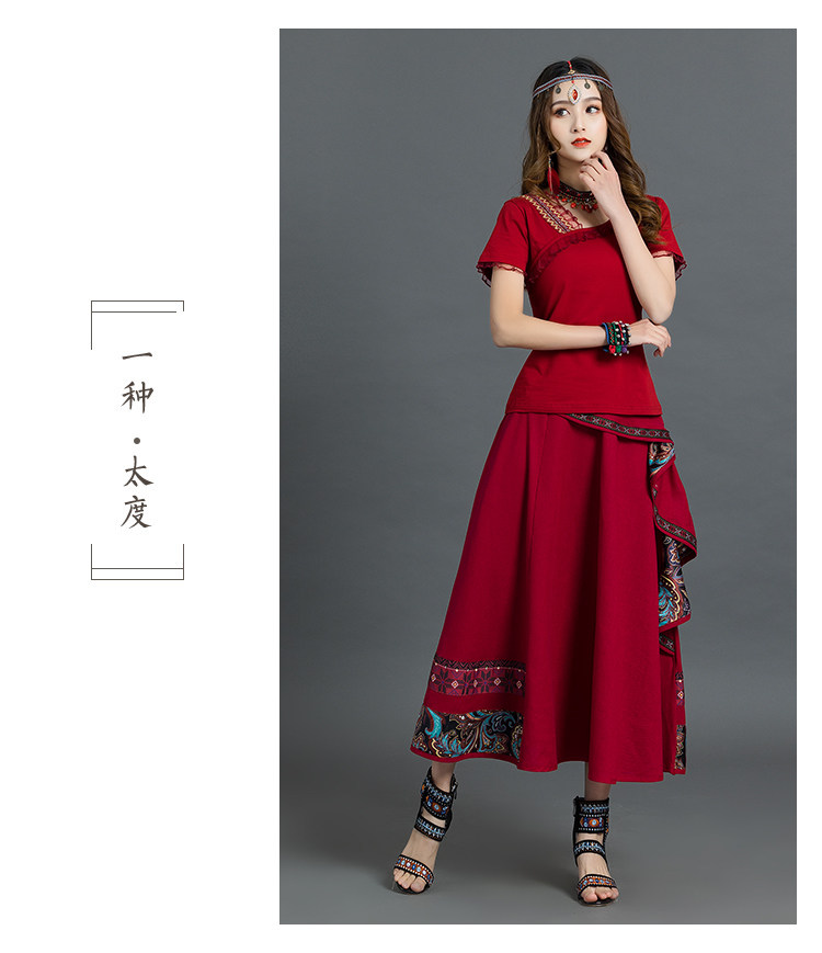 Летняя ретро этническая юбка, коллекция 2021, этнический стиль, из хлопка и льна