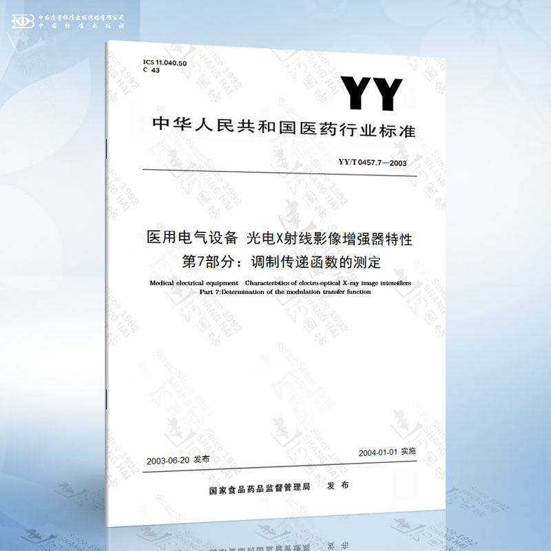 Yy/t 0457.7-2003 Медицинская электрическая оборудование Оптоэлектроника рентгеновская визуализация Характеристики характеристики характеристики. Часть 7: Измерение функции изменения и передачи