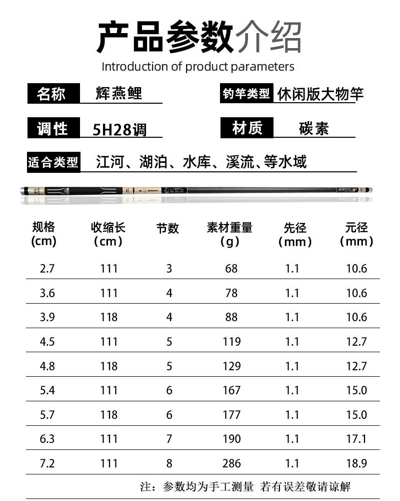 Карп -стержень 28 Ультра -светлый ультра -хард высокий рыболовный стержень