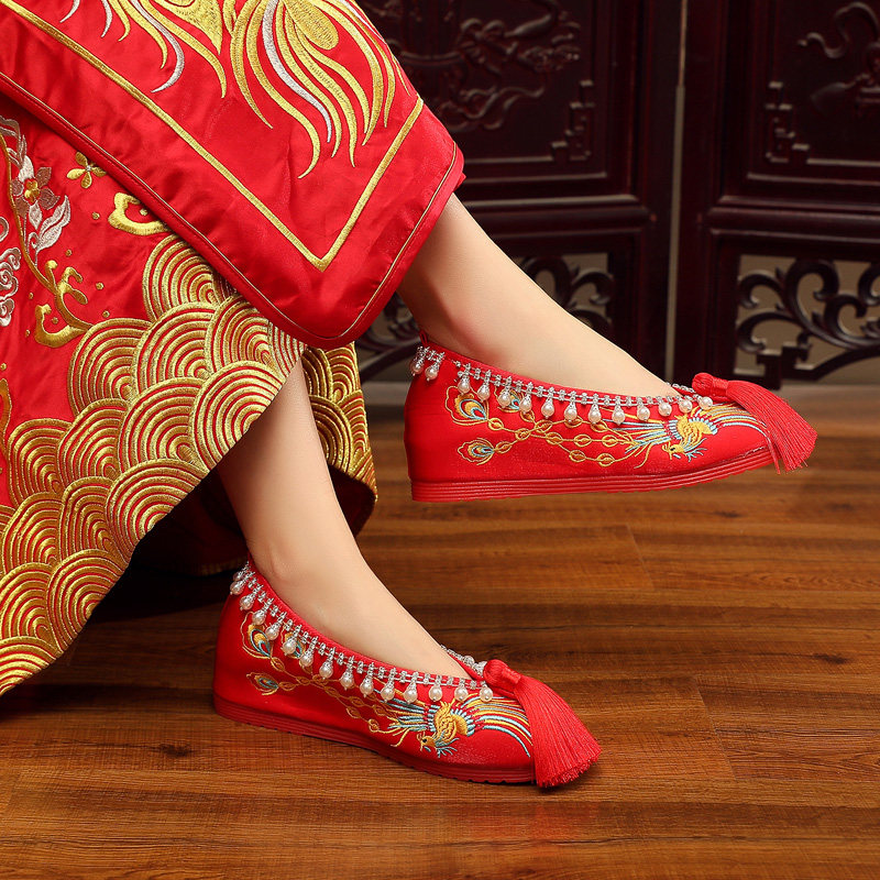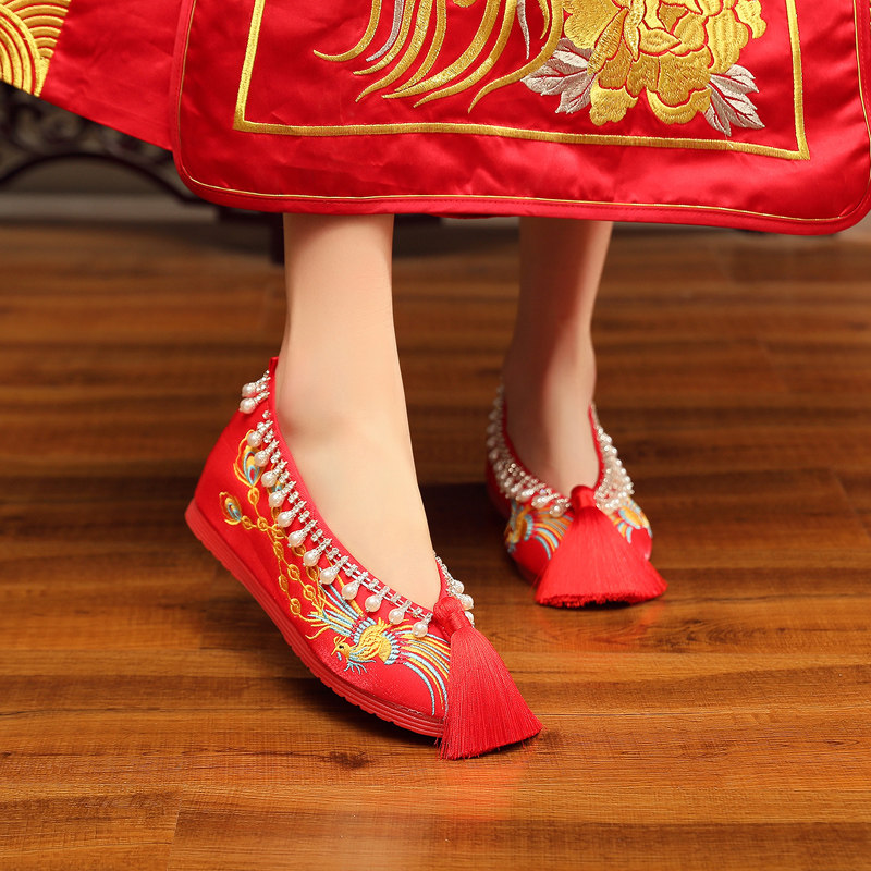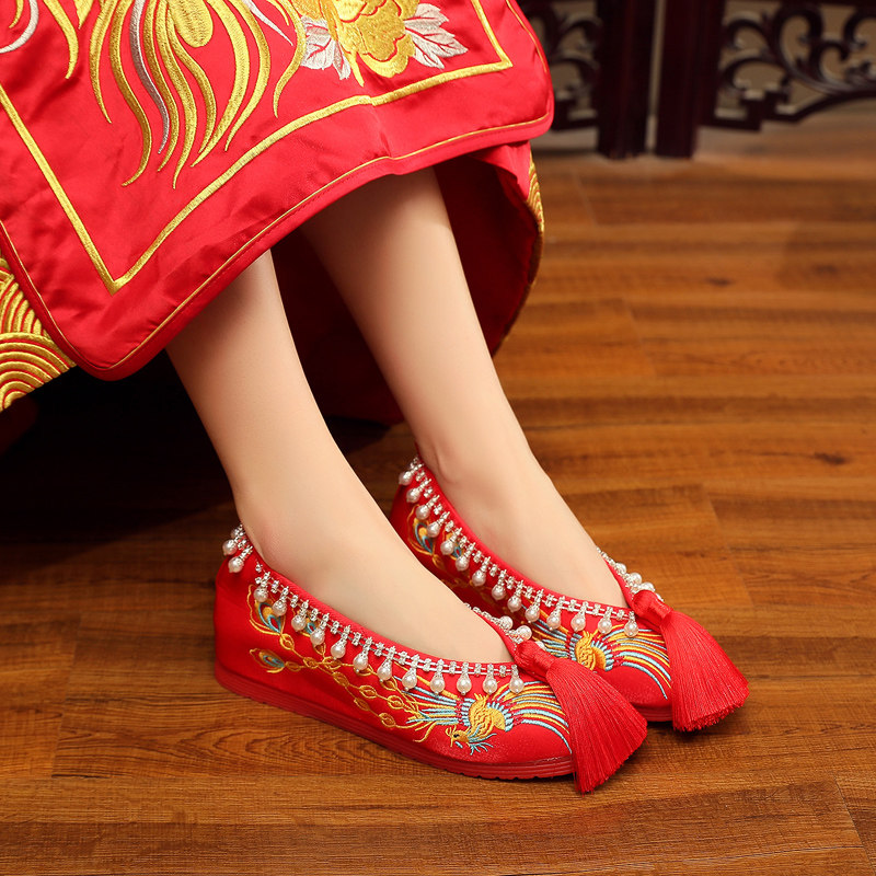 Оригинальная обувь, высокие красные свадебные туфли для невесты, ханьфу, делается под заказ, китайский стиль