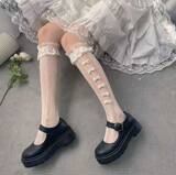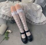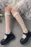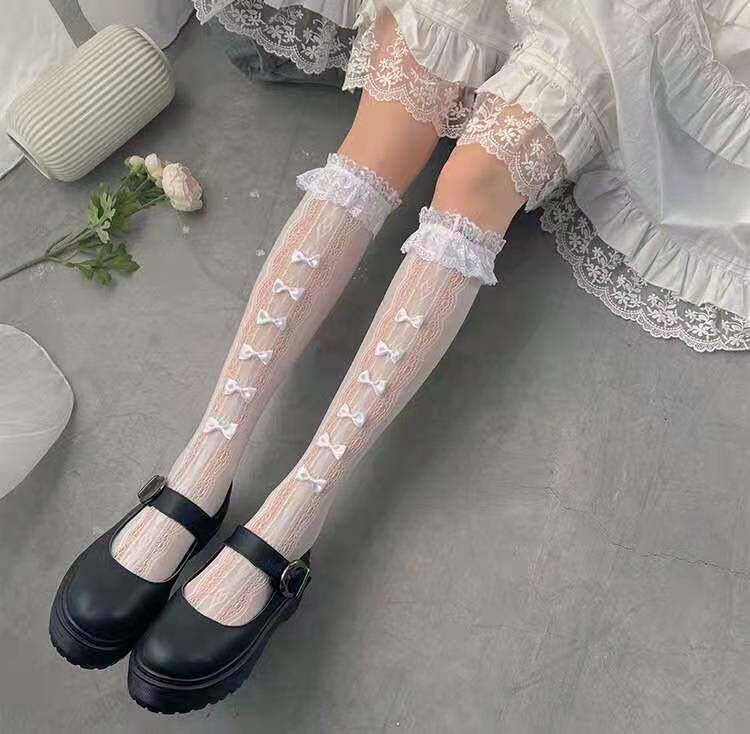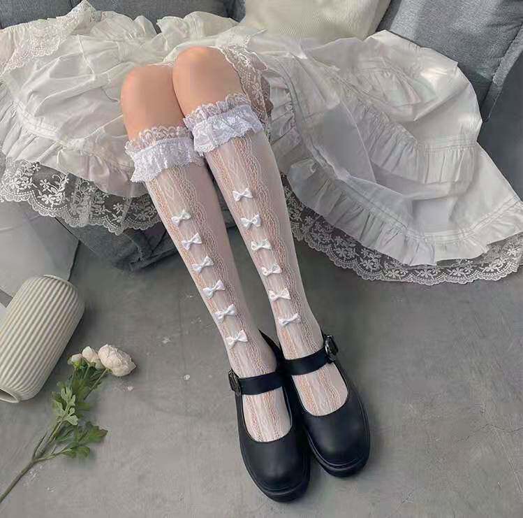 Японские милые белые кружевные тонкие носки с бантиком, стиль Лолита, кружевное платье, средней длины
