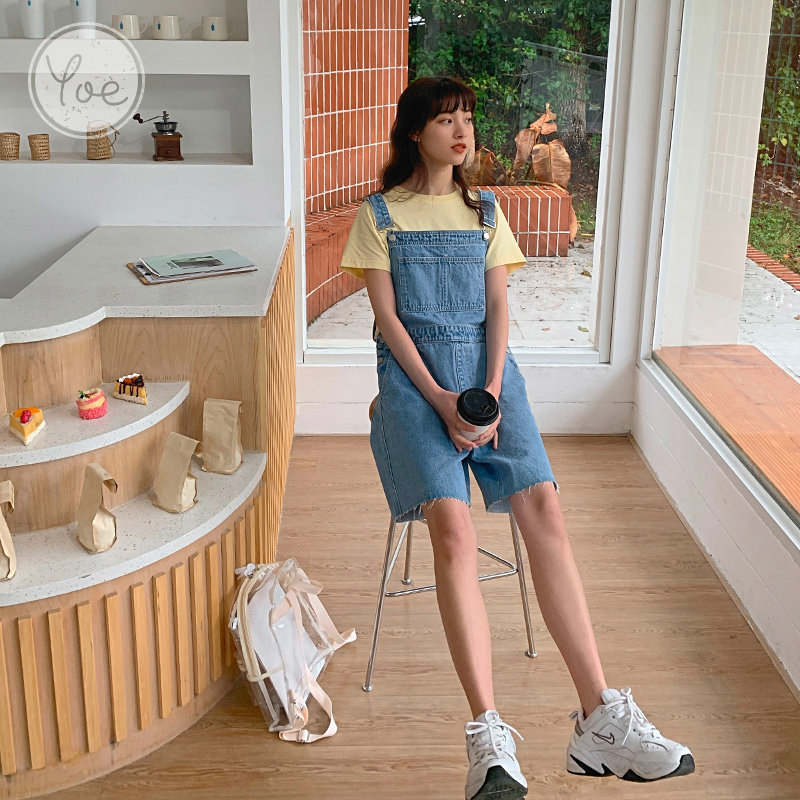 Джинсовый комбинезон, штаны, шорты, коллекция 2022, свободный прямой крой, подходит для подростков, в корейском стиле