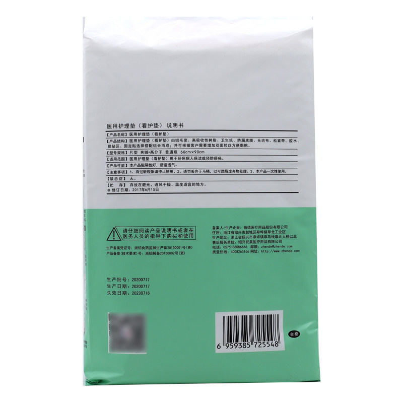 Подушка медицинского обслуживания Zhende (видно на прокладках) 60*90 см 5 Таблетки (绒+полимер) Нормальный уровень