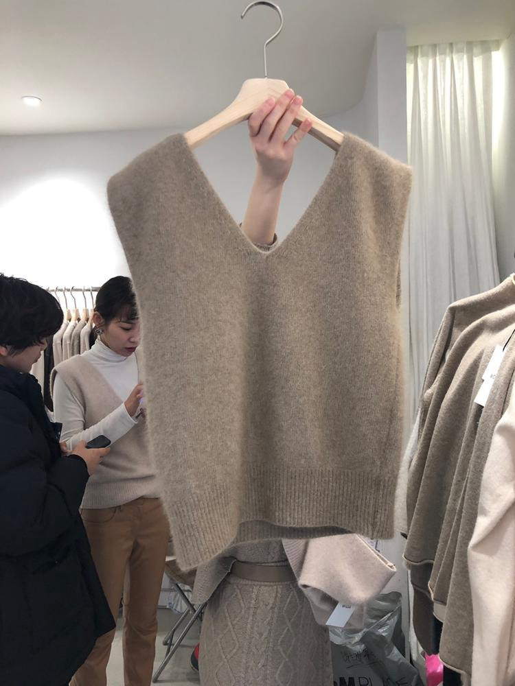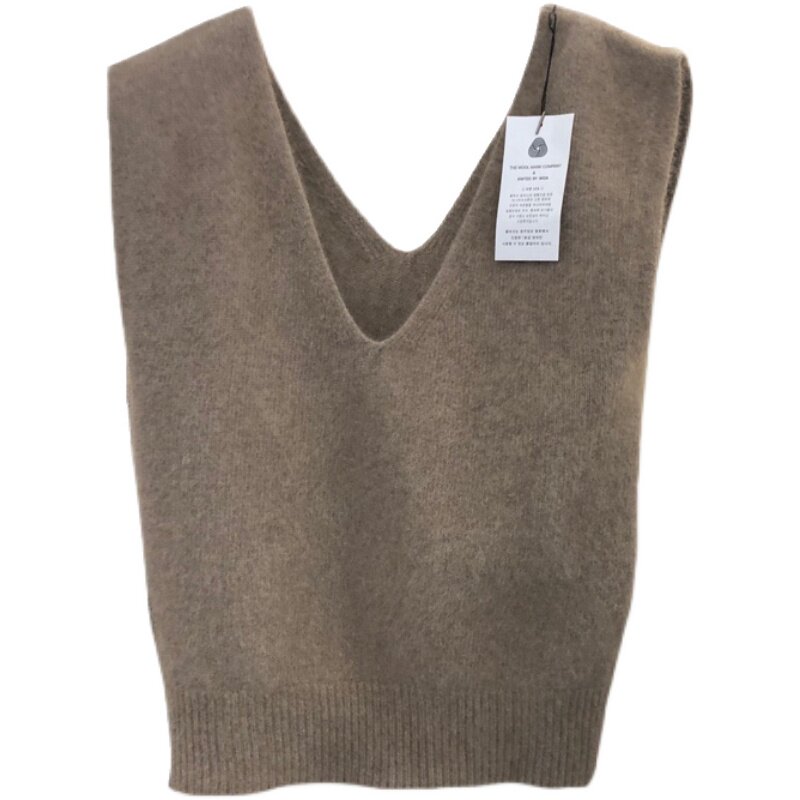 Демисезонный шерстяной короткий жилет, кашемировая трикотажная майка топ, свободный крой, V-образный вырез, большой размер