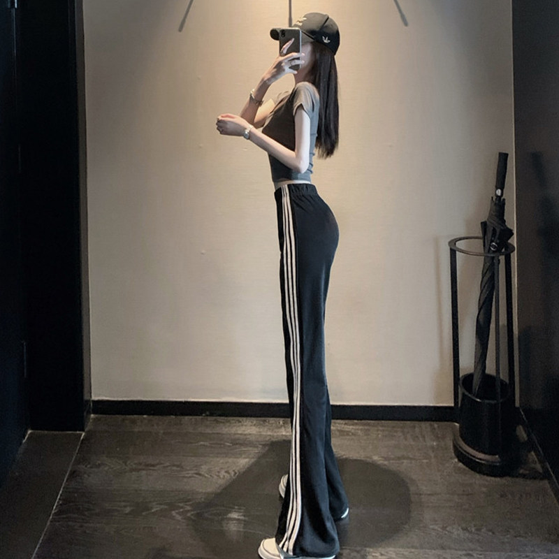 Черные спортивные универсальные штаны для отдыха, короткая приталенная футболка, комплект, высокая талия