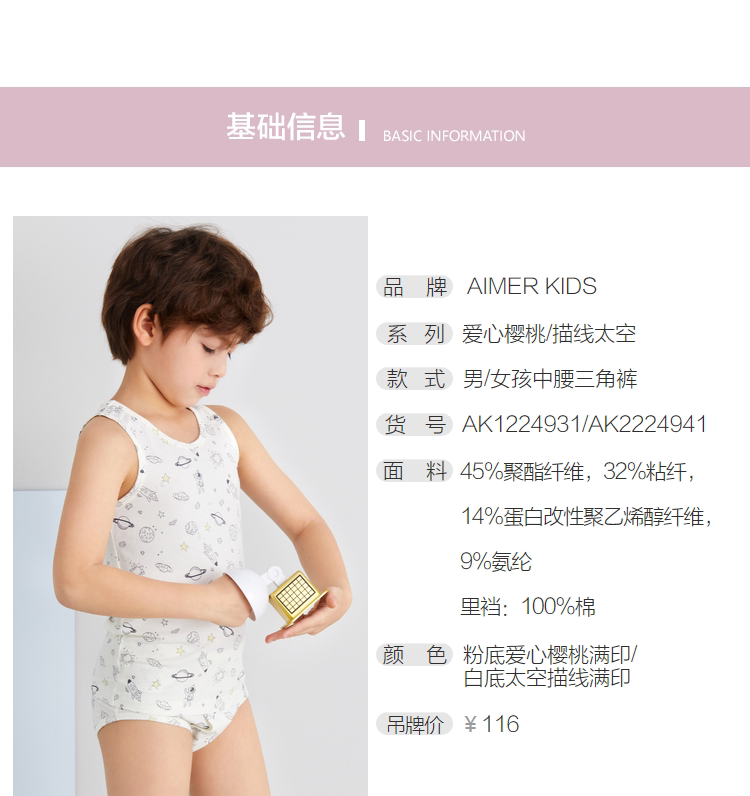 爱慕 Детское нижнее белье подходит для мужчин и женщин, хлопковые трусы, средняя посадка