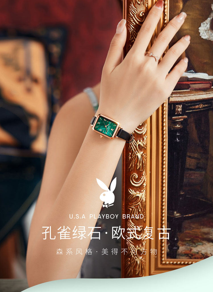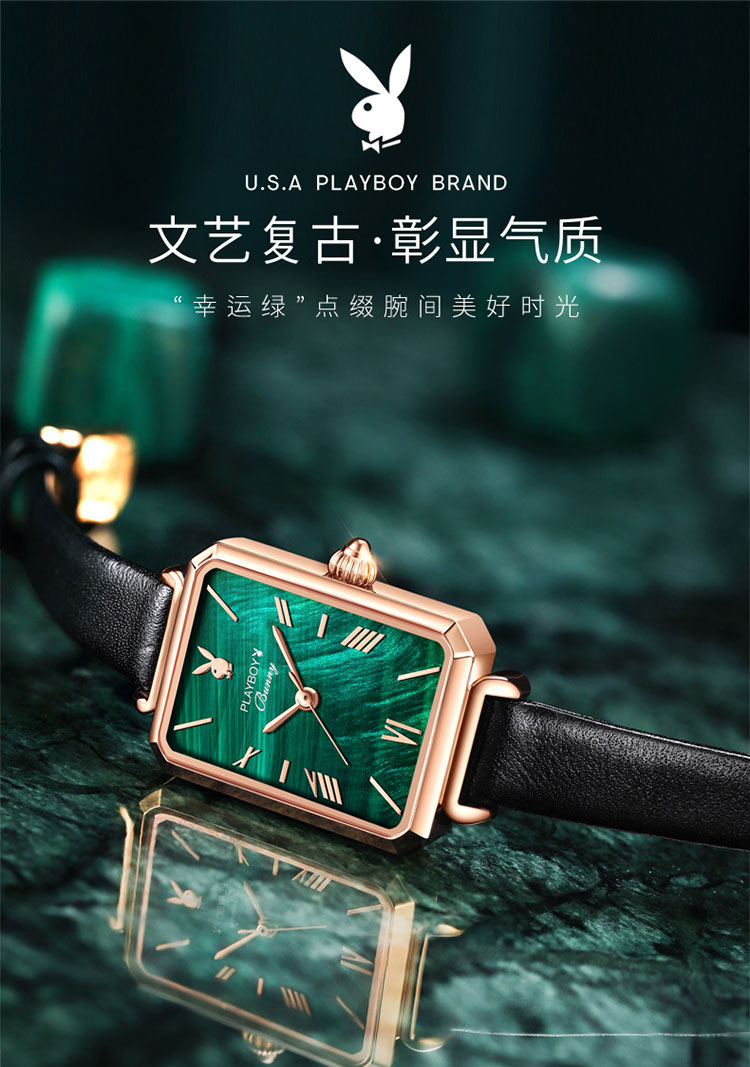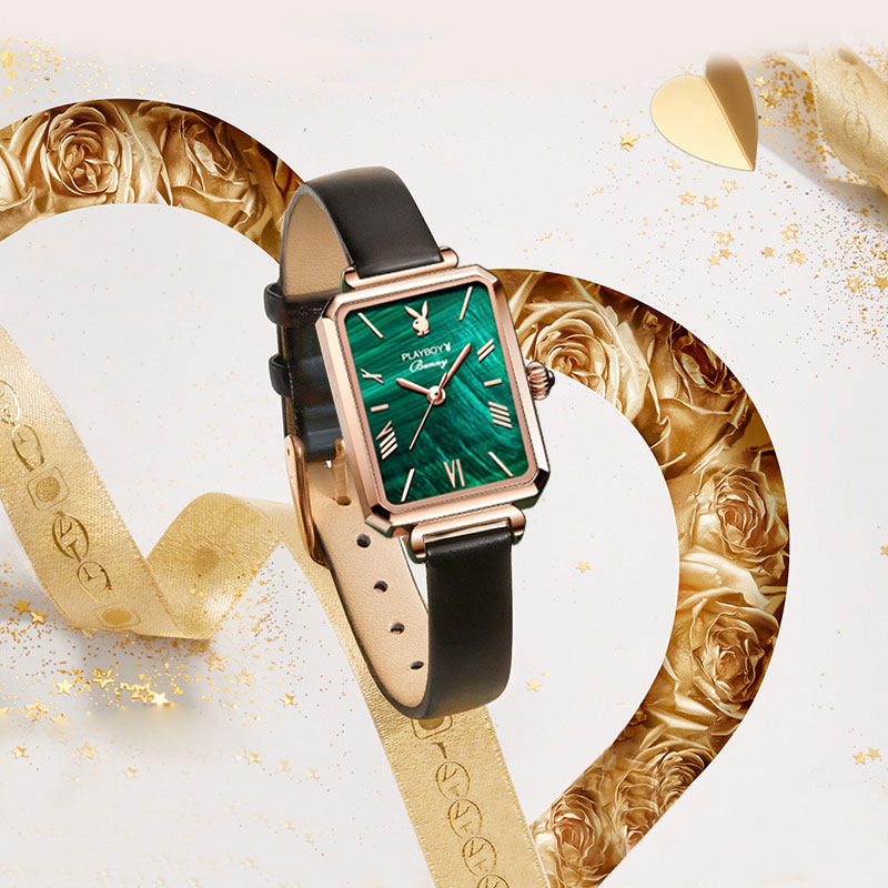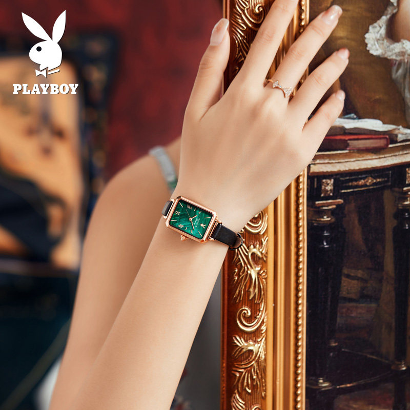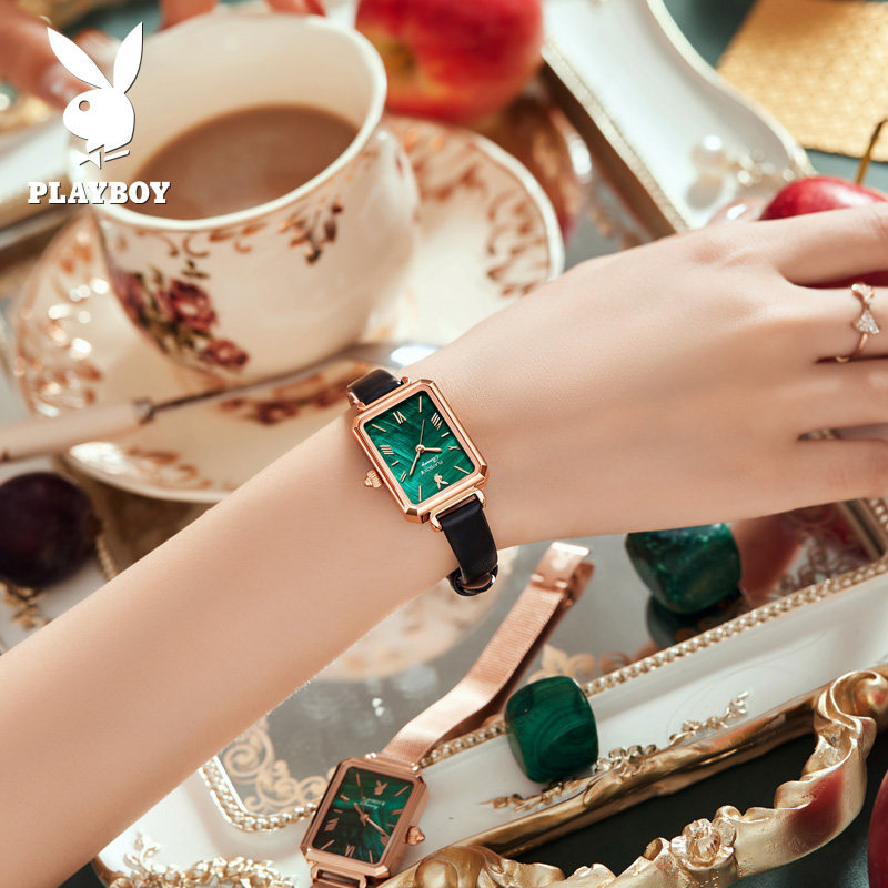 - Playboy Small Square Watch зеленый пояс