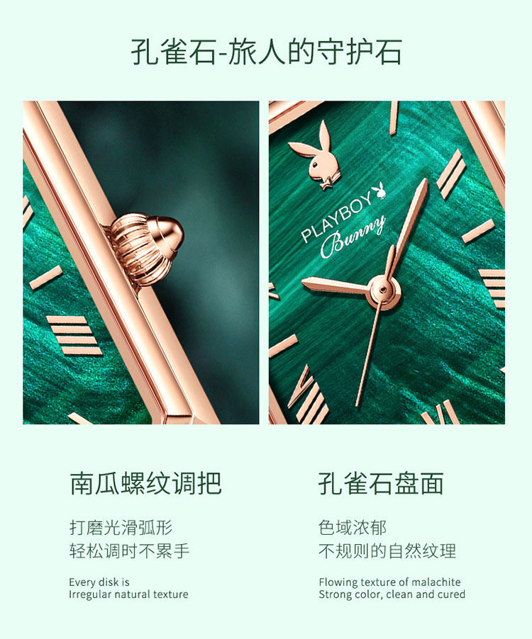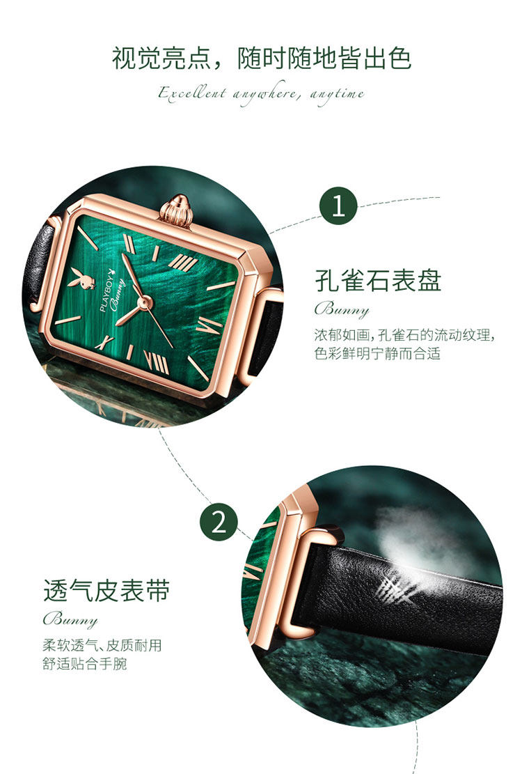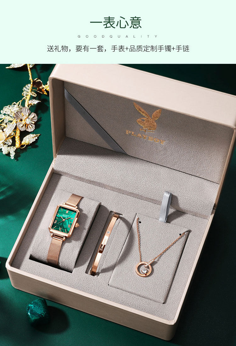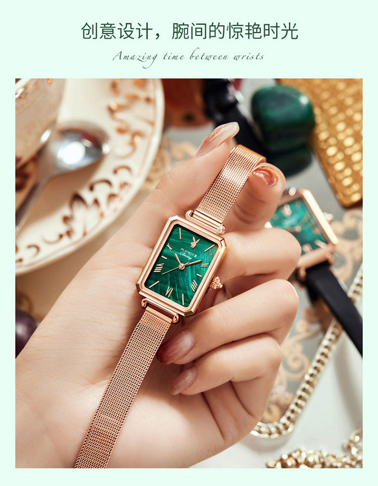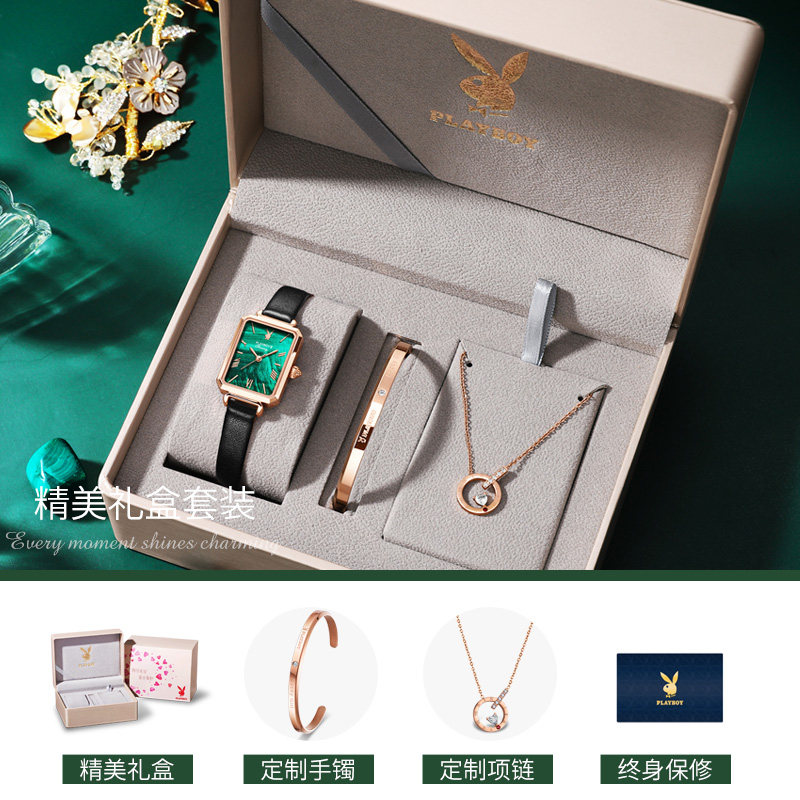 - Playboy Small Square Watch зеленый пояс