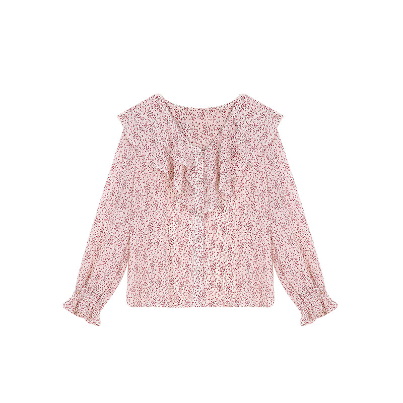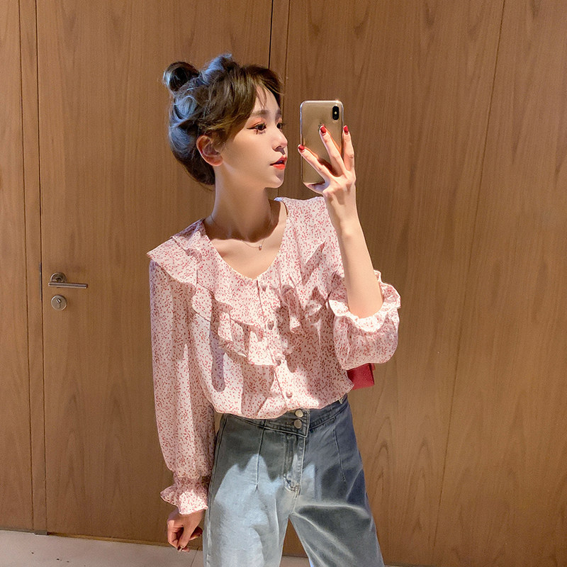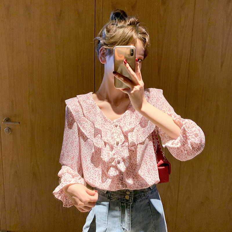 Весенний милый шифоновый лонгслив, цветочный принт, коллекция 2021, в корейском стиле