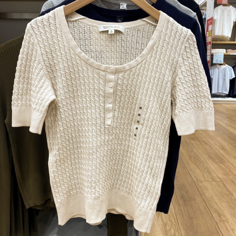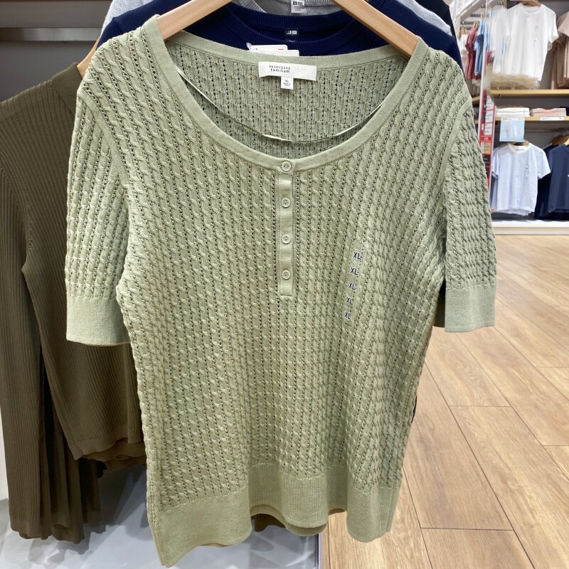 Модель сотрудничества/Новый женский цветок Генри-воротник/свитер Лучший летний летний полая тонкая футболка R478512