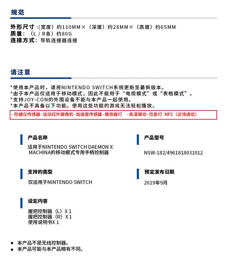 Switch NS аксессуары Magic Mech Limited левая и правая ручка Joycon Hori Original Spot