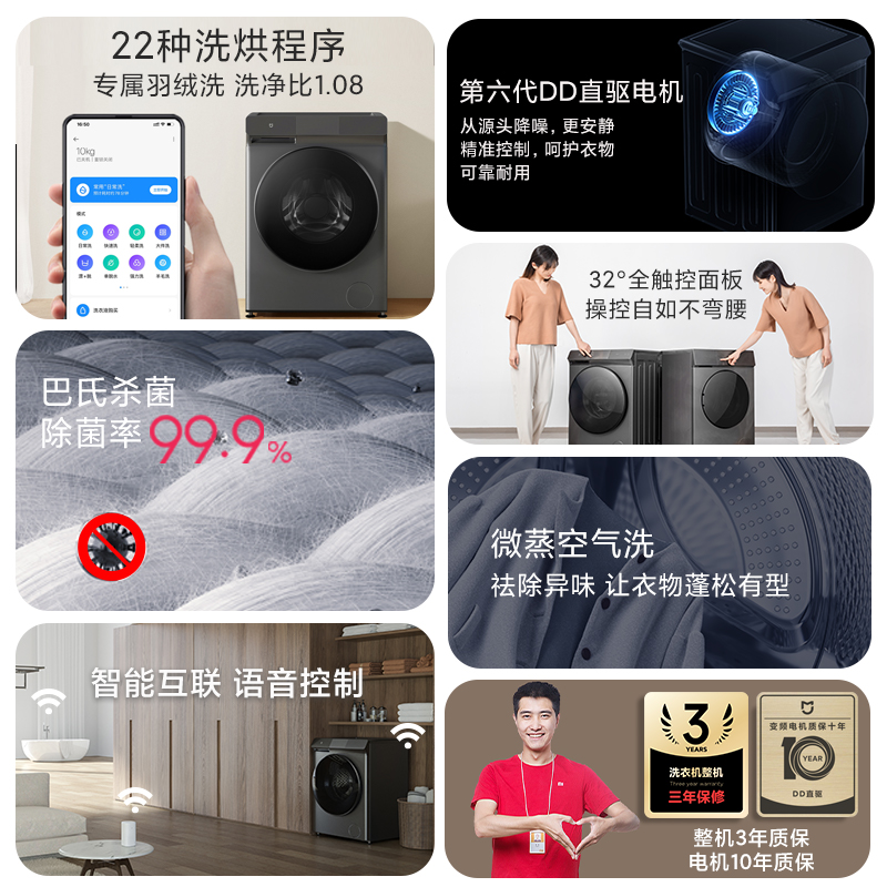 Семейство Xiaomi Mi 10 кг крупно -мощностей инвертор -ролик Полностью автоматическая стиральная машина Дома