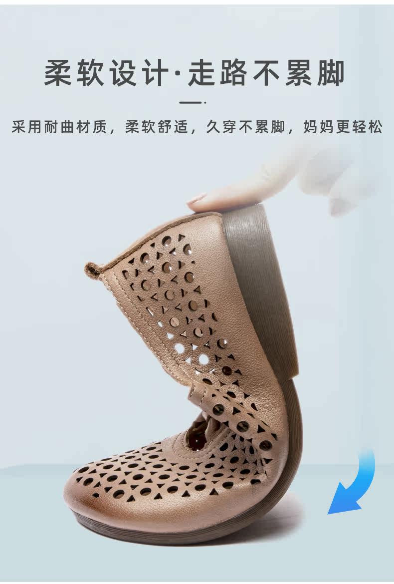 Летние сандалии для матери для кожаной обуви, комфортная обувь, мягкая подошва, из натуральной кожи, для среднего возраста