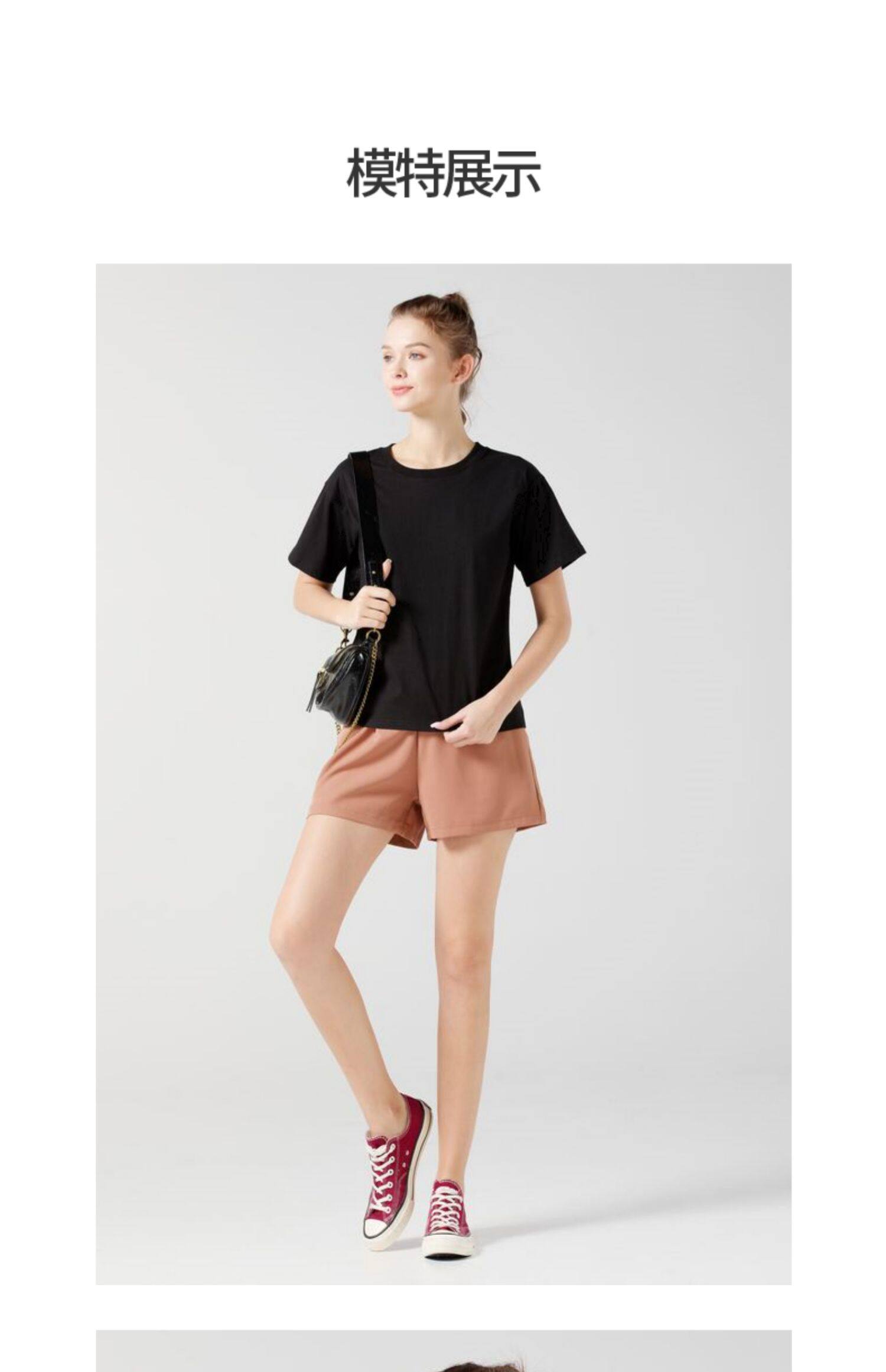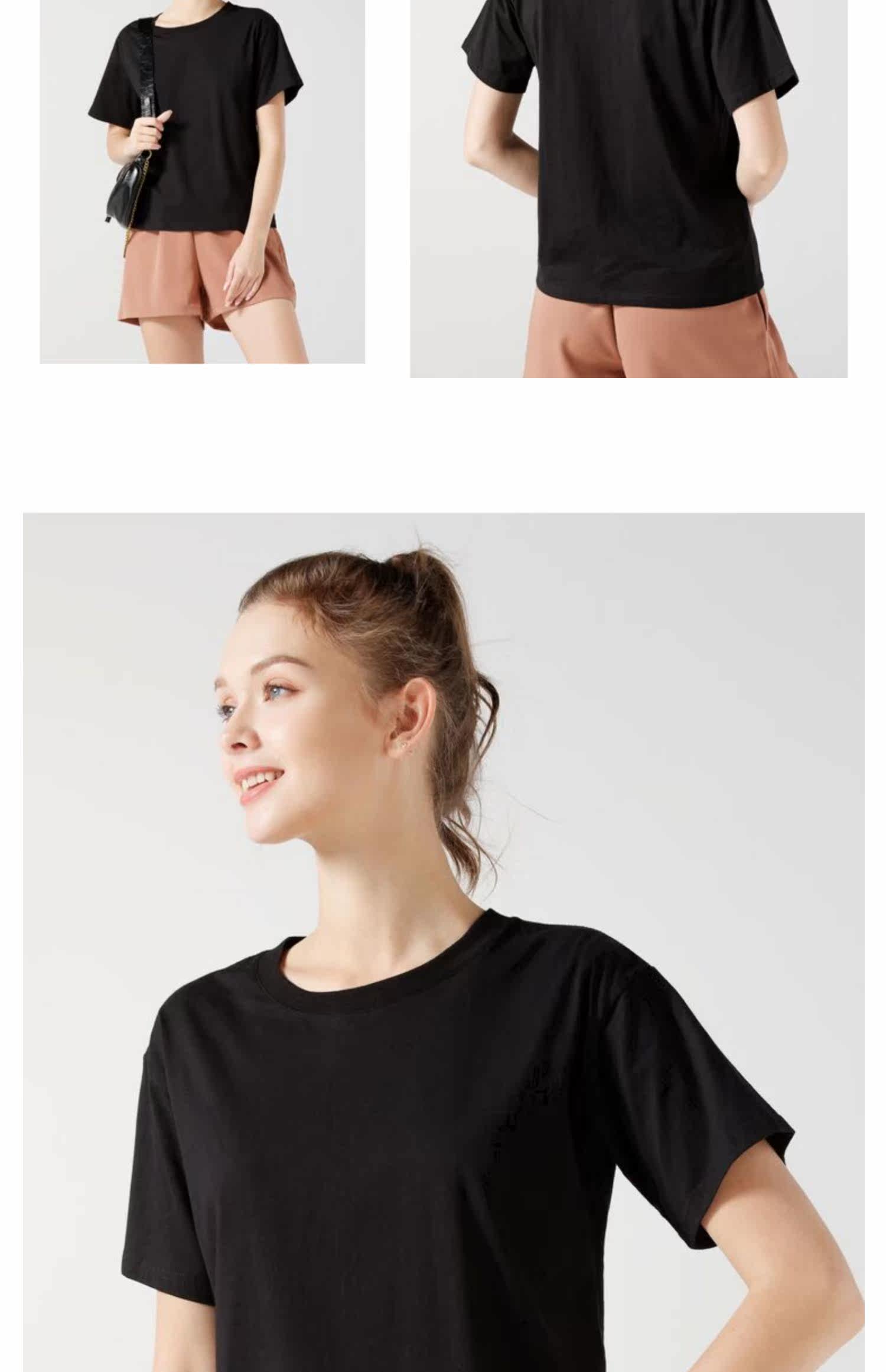 艾米恋 Черная летняя хлопковая футболка с круглым воротником, 2021 года