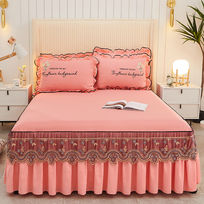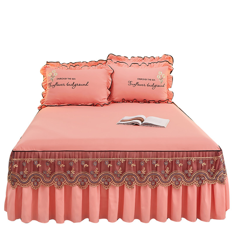 萱羽 Покрывало, нескользящий комплект, пылезащитный матрас, накладки, в корейском стиле, с вышивкой, 3 предмета