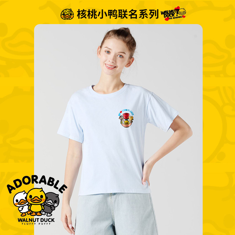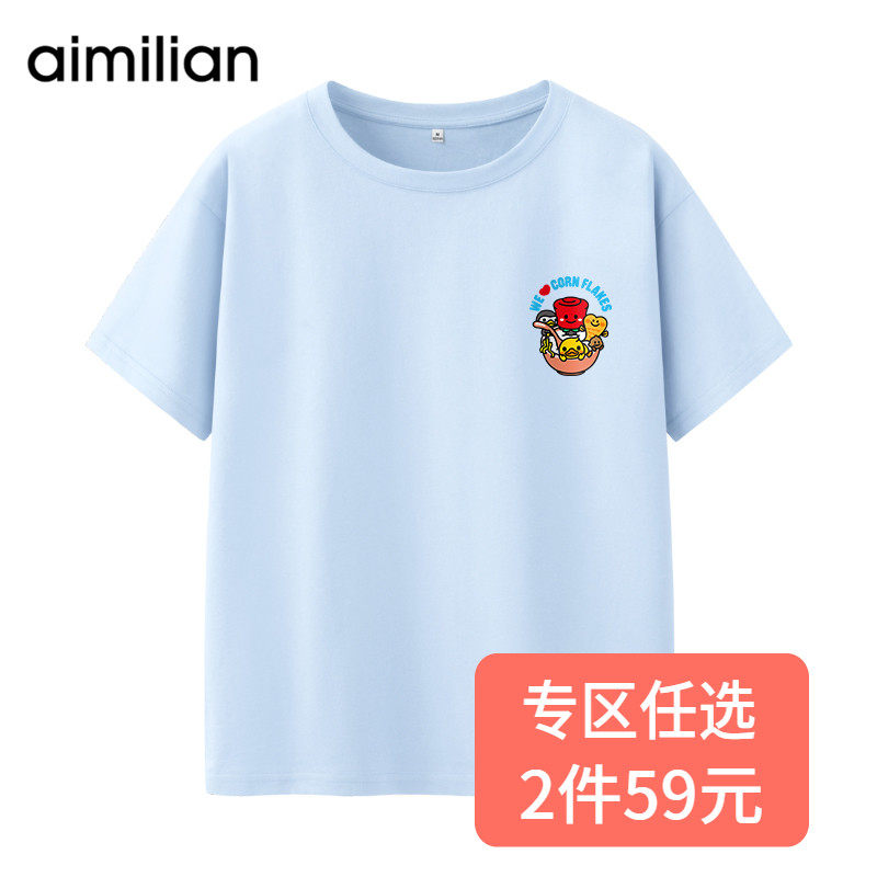 艾米恋 Синяя хлопковая летняя брендовая футболка, 2021 года, свободный крой