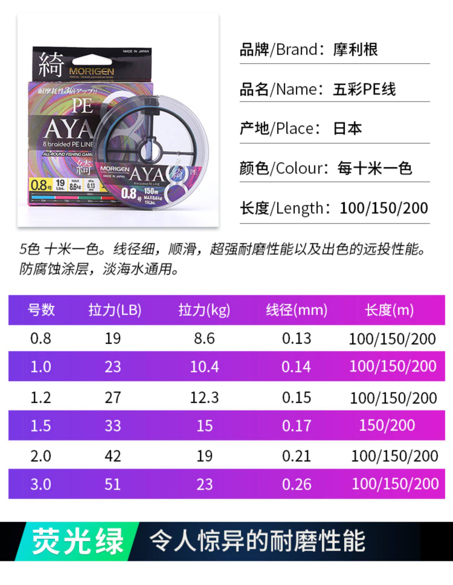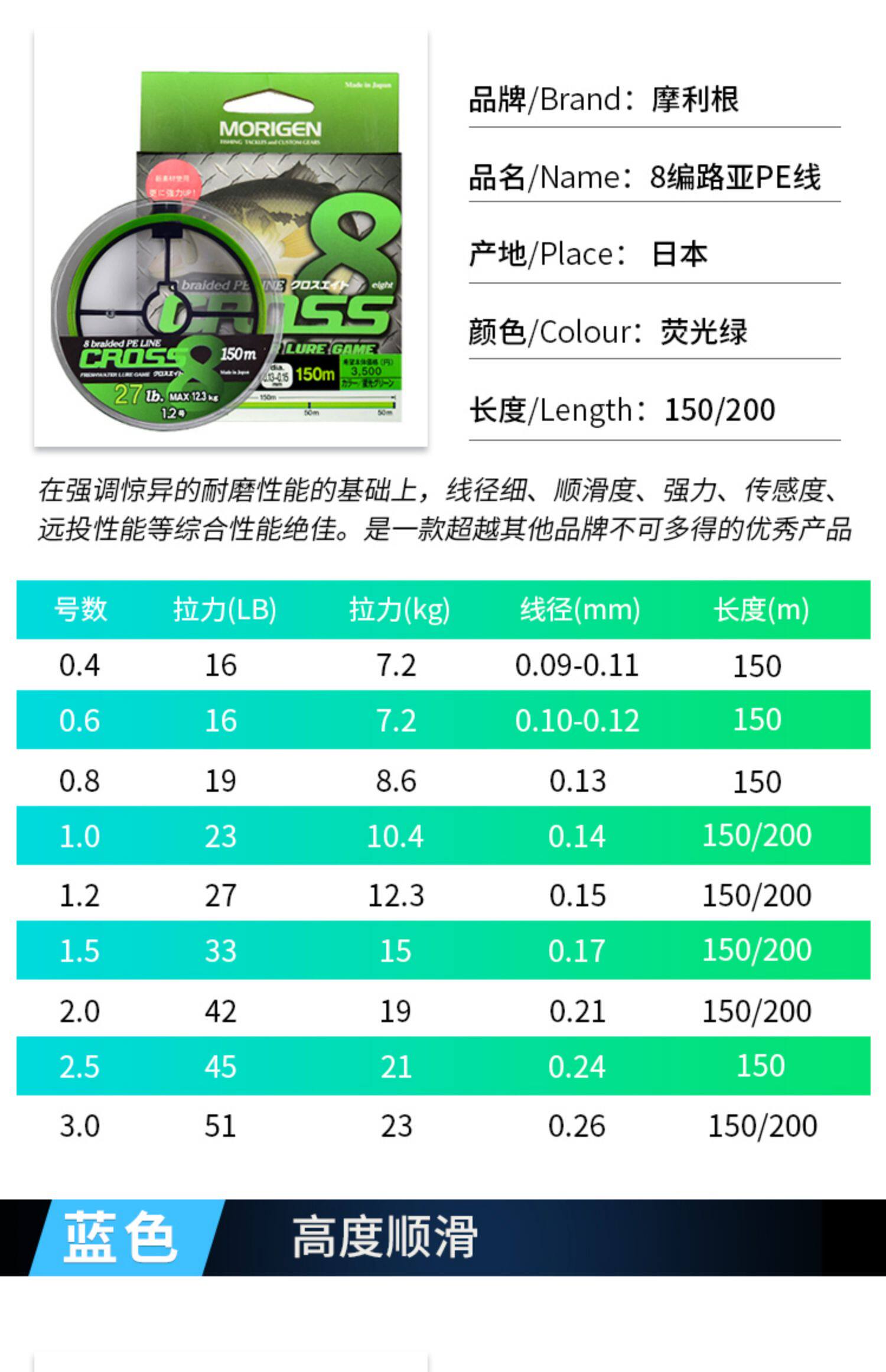Япония импортировала Morigen Morigen PE Line Z8 Редактор Dali Road Asian Woven Line Super Sounly Tension
