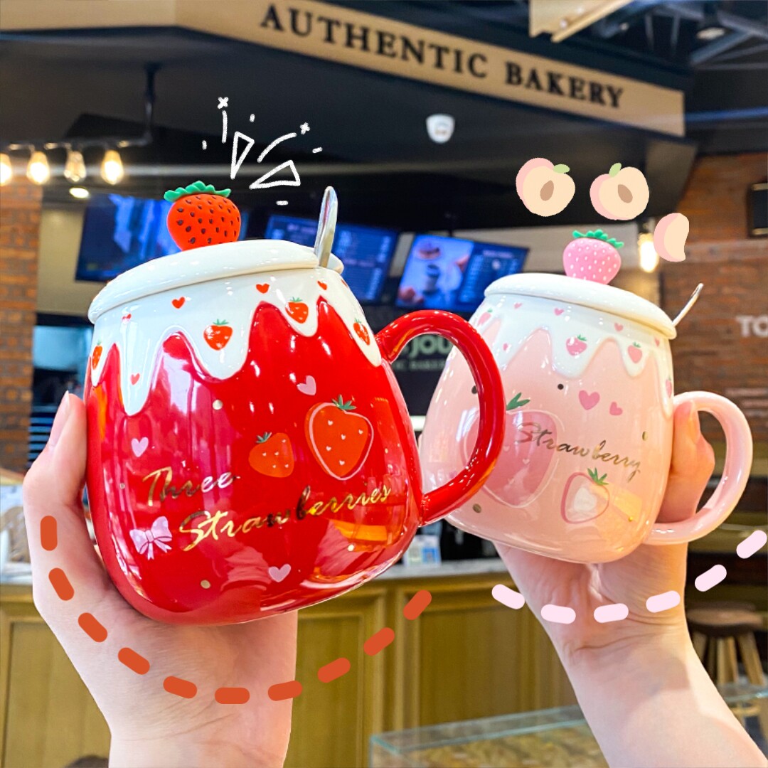 Мультяшная клубника, керамическая милая ручка со стаканом, принт, в корейском стиле