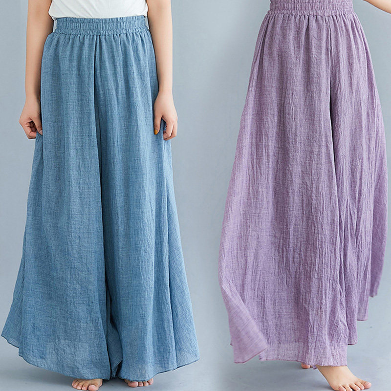 Цветные штаны, юбка, из хлопка и льна, А-силуэт, эластичная талия, свободный крой