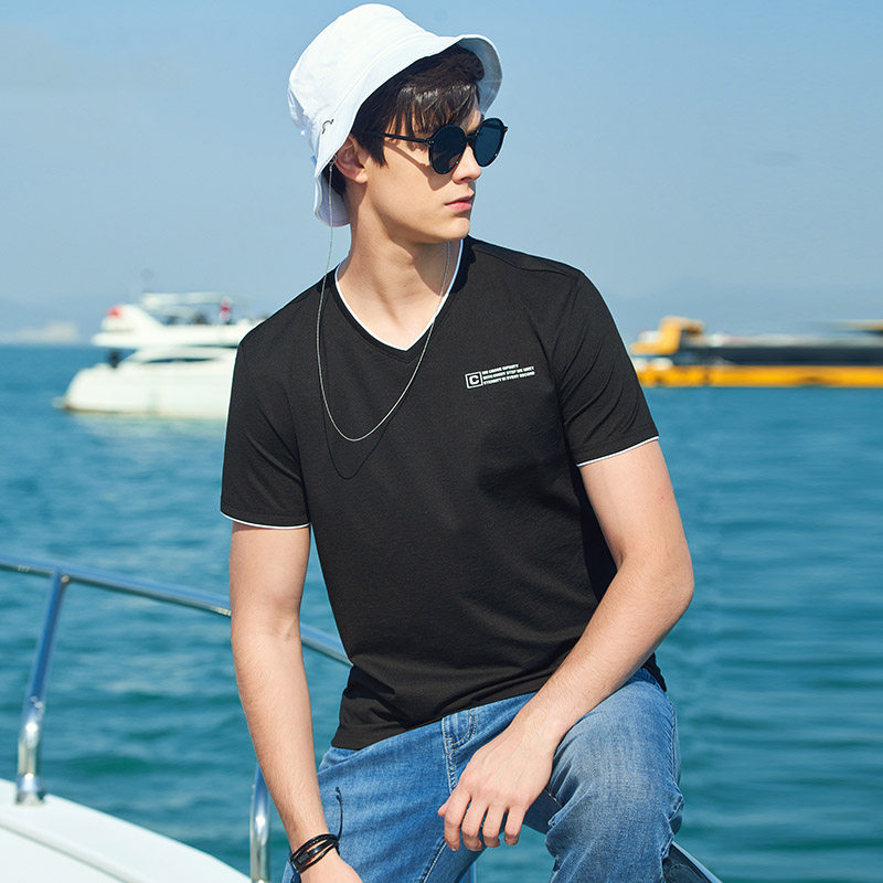 Летняя трендовая футболка с коротким рукавом, сезон 2021, в корейском стиле, V-образный вырез, короткий рукав