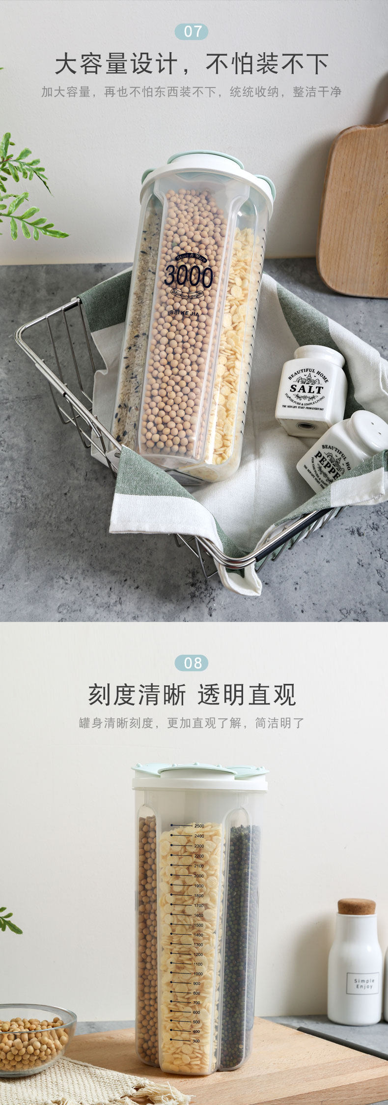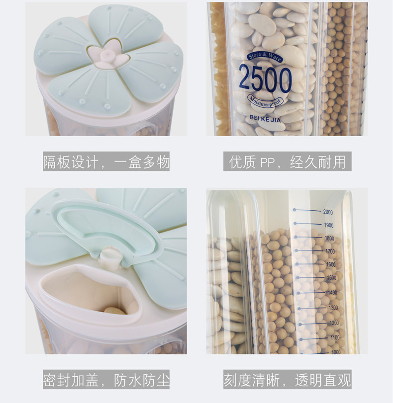 Гранит Разное зерновое хранилище пластиковый подпрограмма Harl Kitchen Homeving Food Sealing Bean Bean коробка для хранения бобов