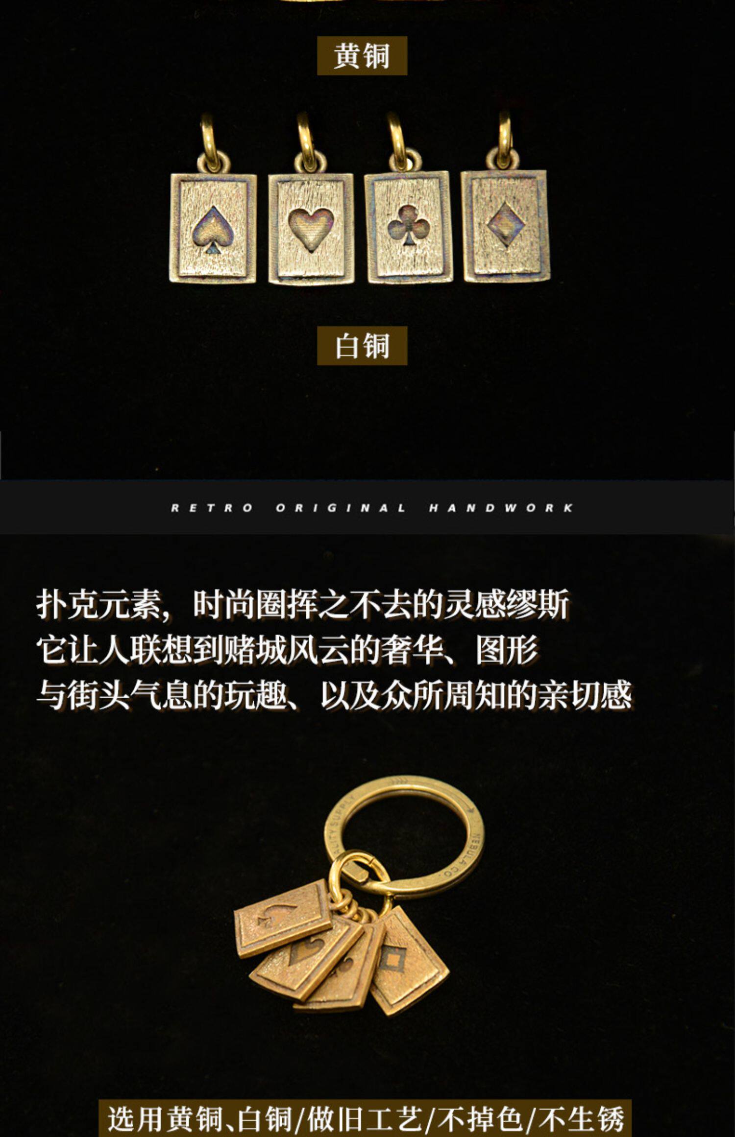 Оригинальные медные игральные карты, ретро брелок ручной работы для ключей, в американском стиле
