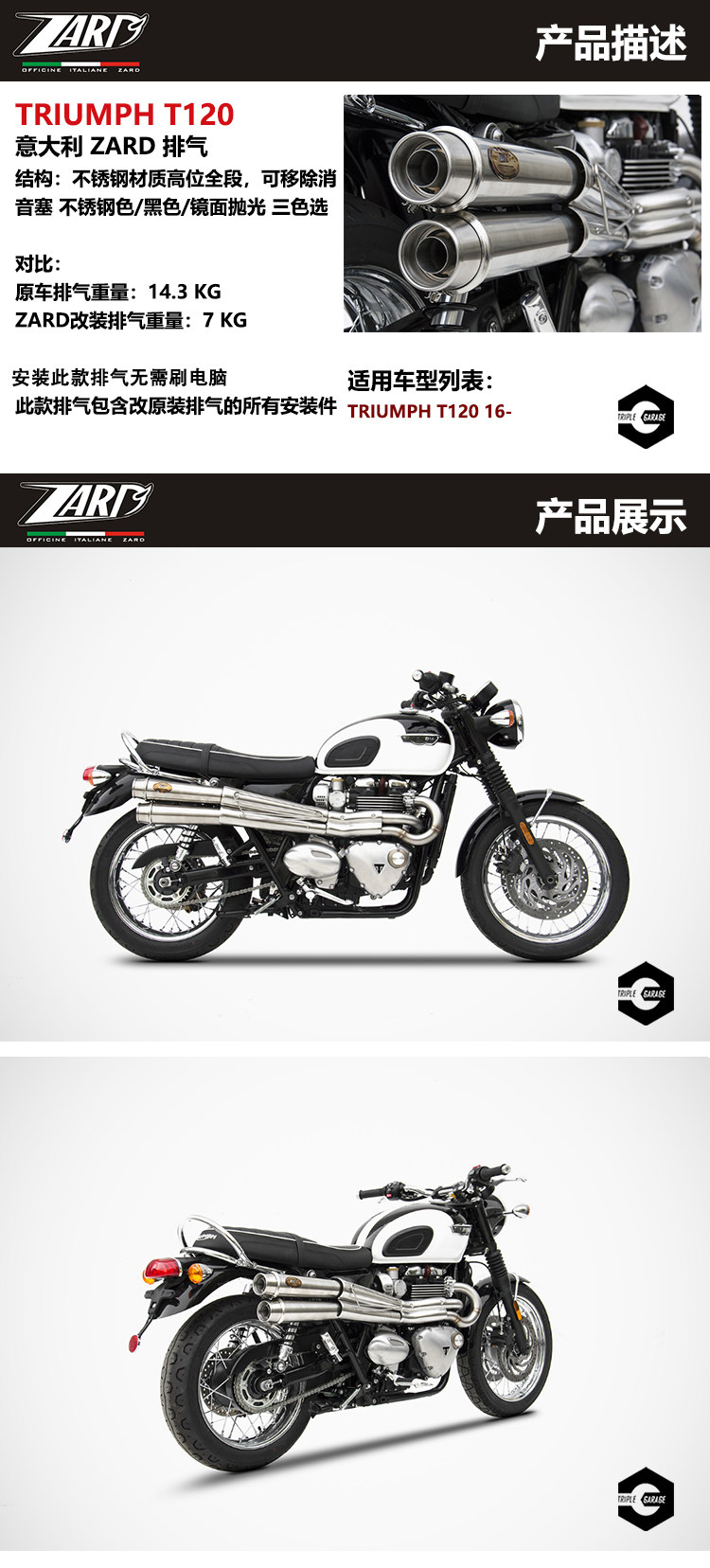 Итальянский Zard T100 T120 модифицирован высокой стороной выхлопной выхлопной выхлопной гаммы.