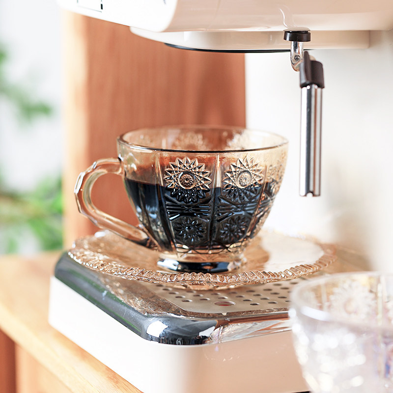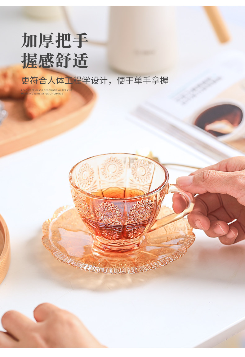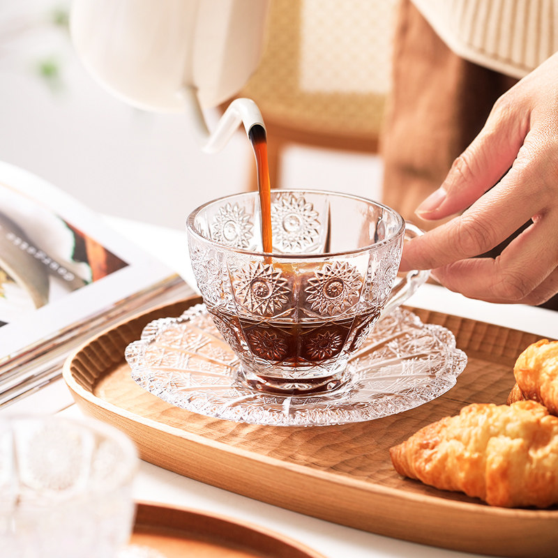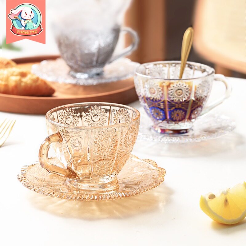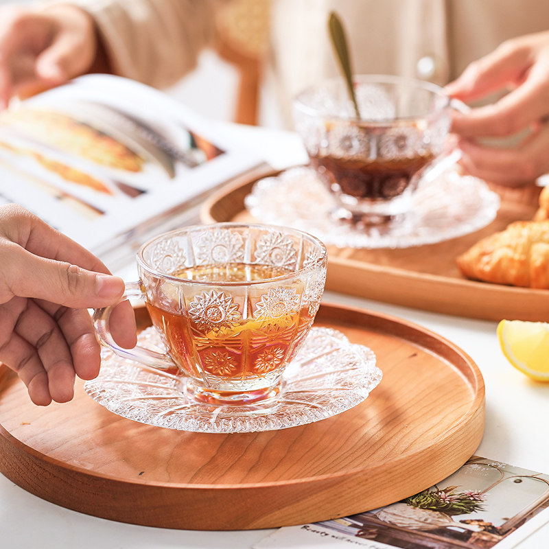 [200-80] Стекло прозрачная кофейная чашка с блюдом с рельтро-ритм Retro высокая стоимость, стакан большой емкости