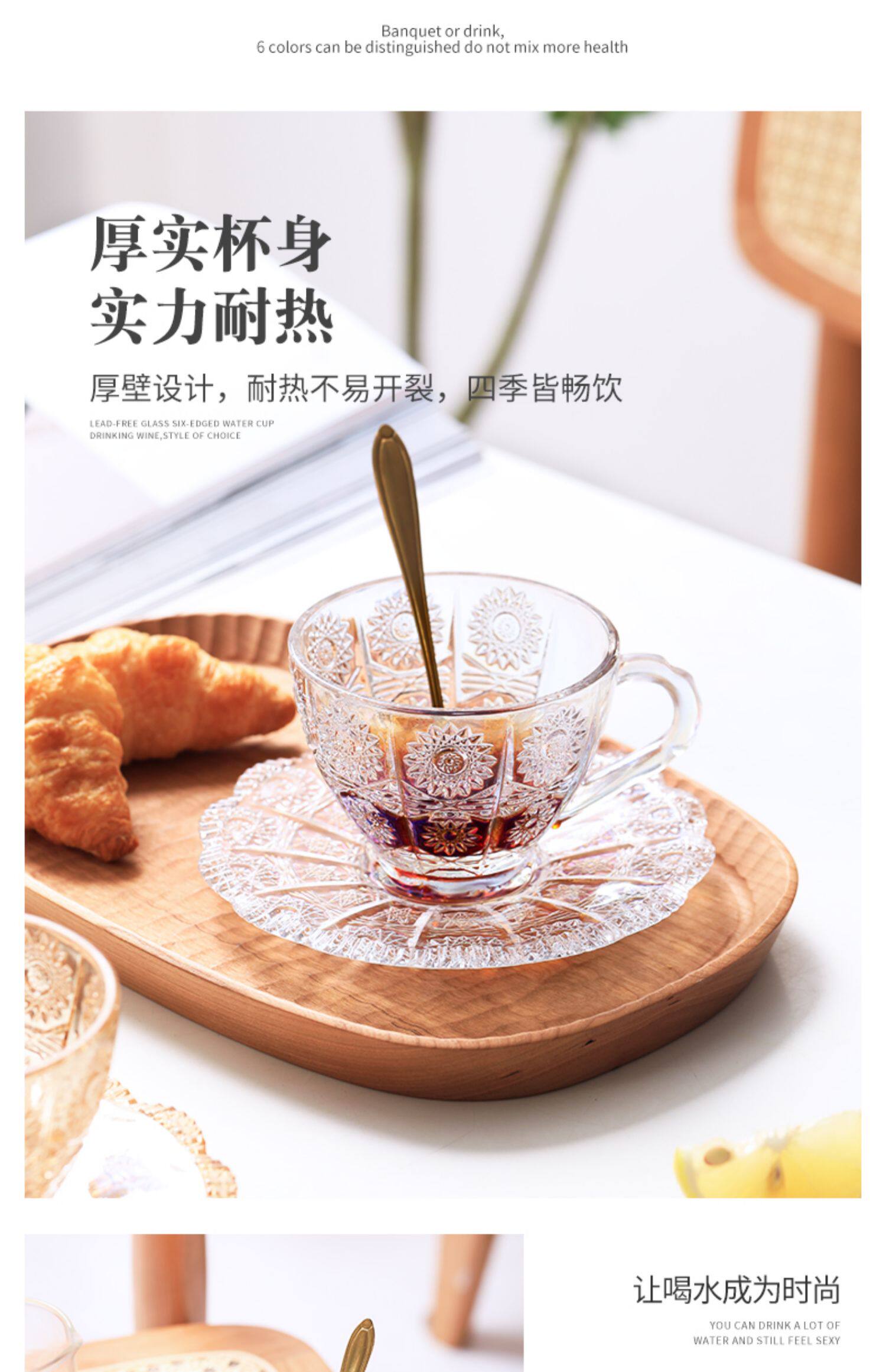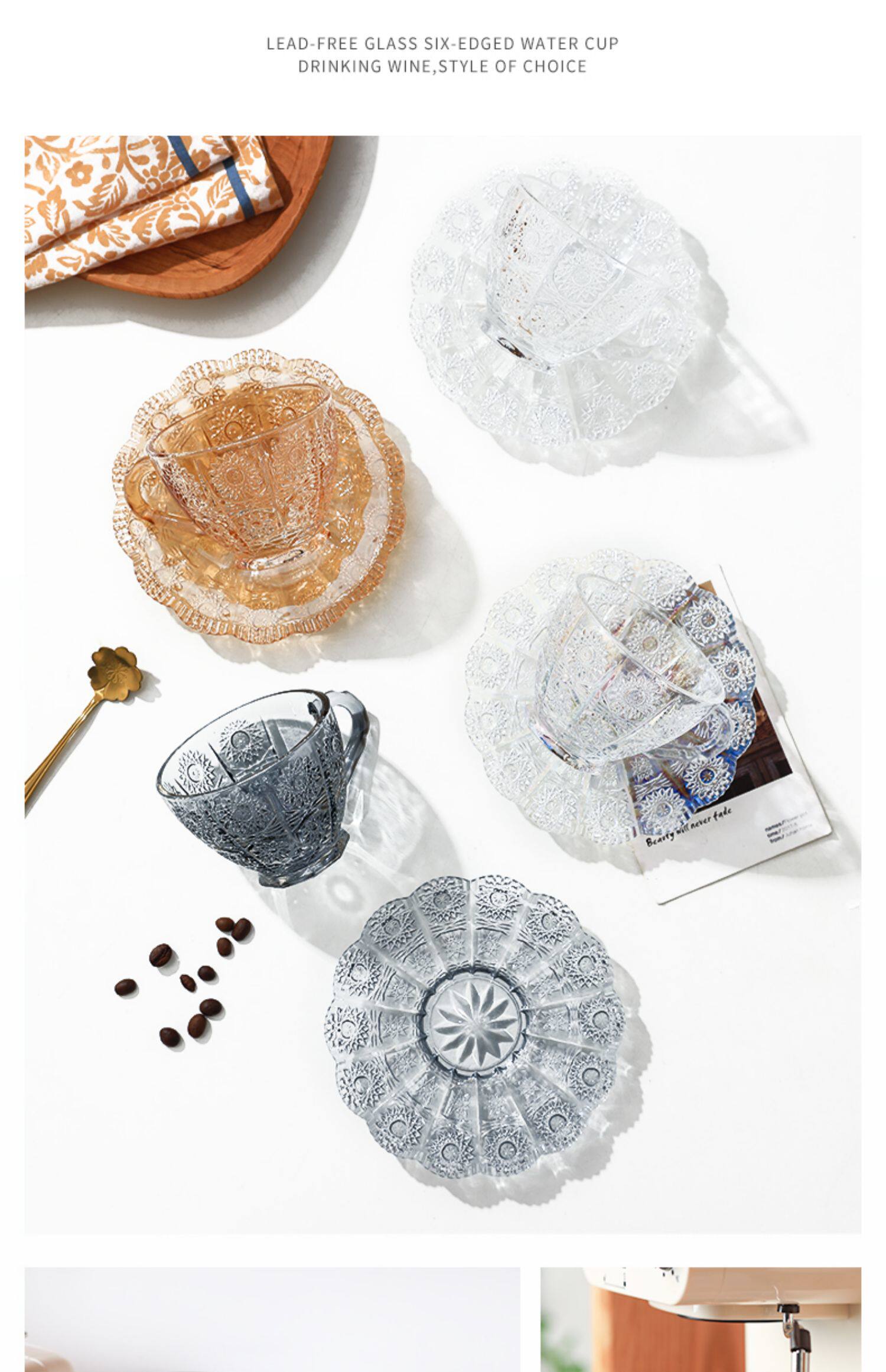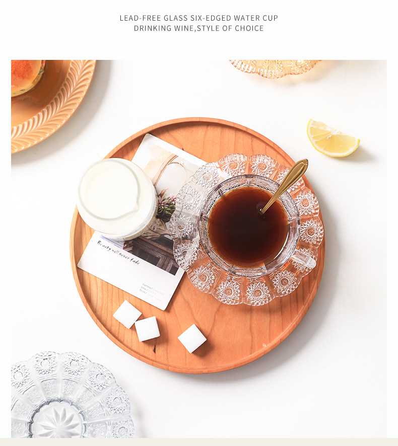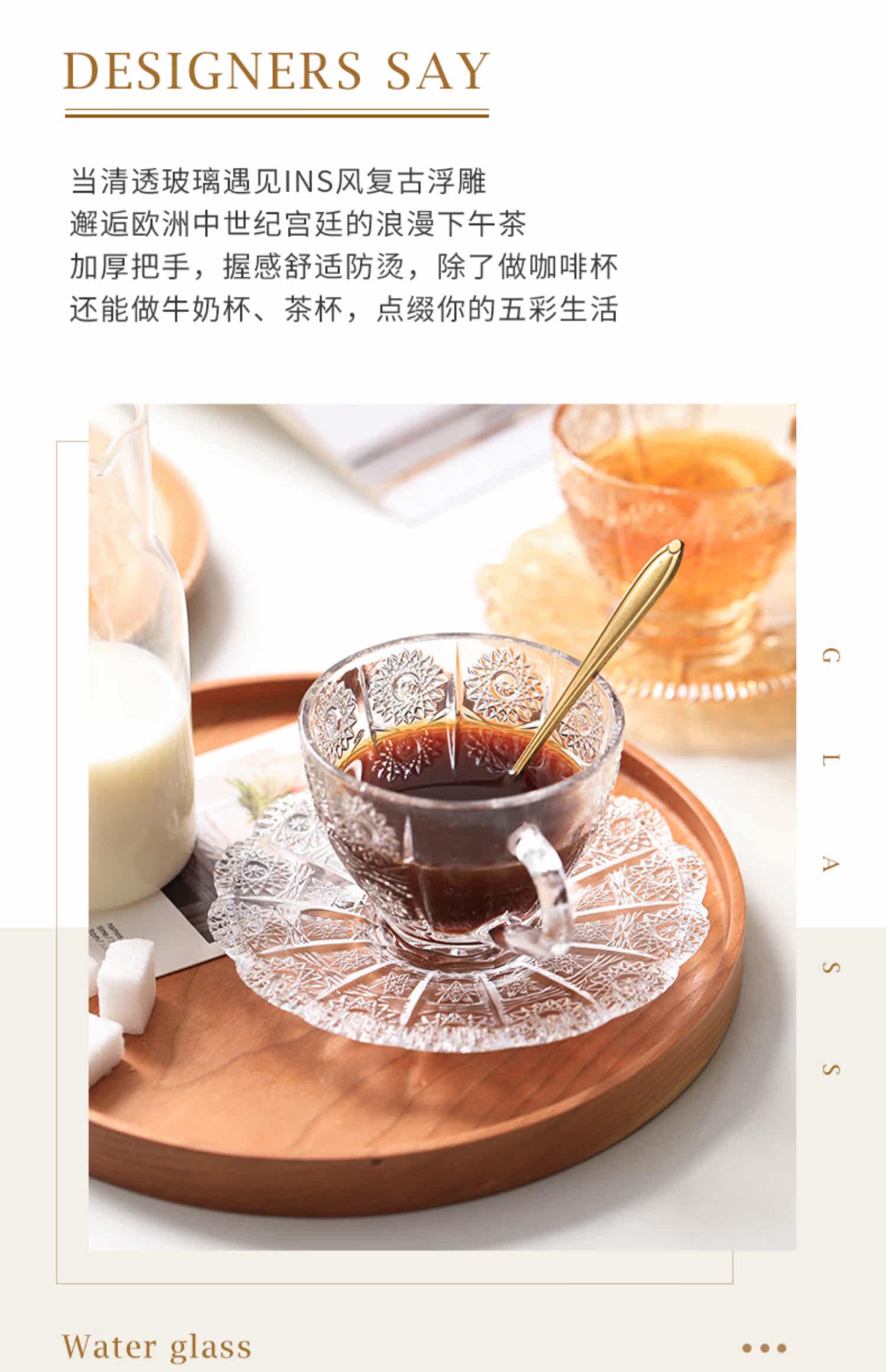 [200-80] Стекло прозрачная кофейная чашка с блюдом с рельтро-ритм Retro высокая стоимость, стакан большой емкости